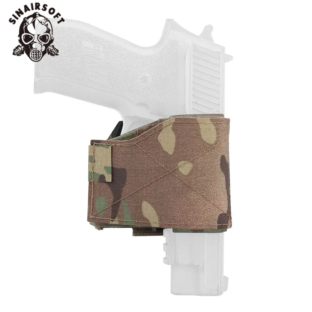 ③Correas MOLLE en la parte posterior para que la funda de la pistola se pueda sujetar a un cinturón de combate, un soporte de placa táctica o un aparejo para el pecho que tiene un sistema Molle.