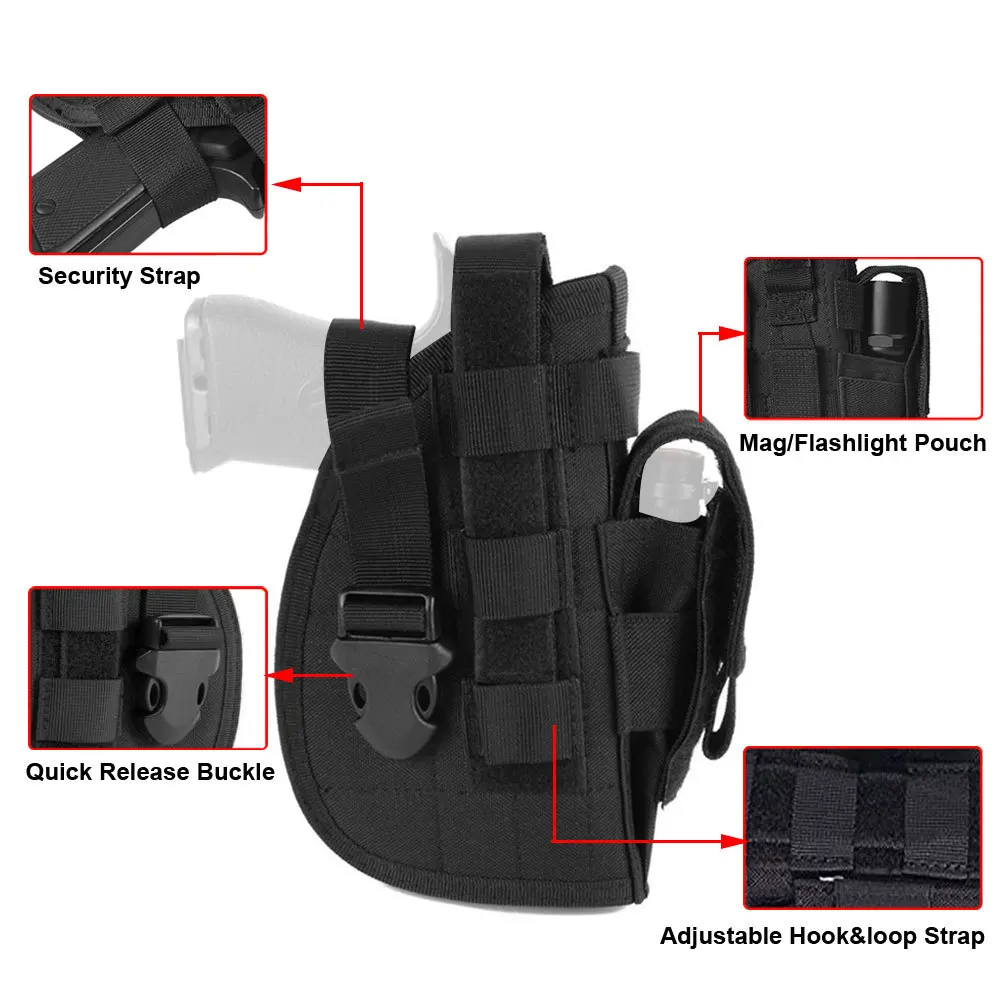 3.La funda para pistola con accesorio Molle se puede utilizar sola en cualquier chaleco o cinturón Molle.