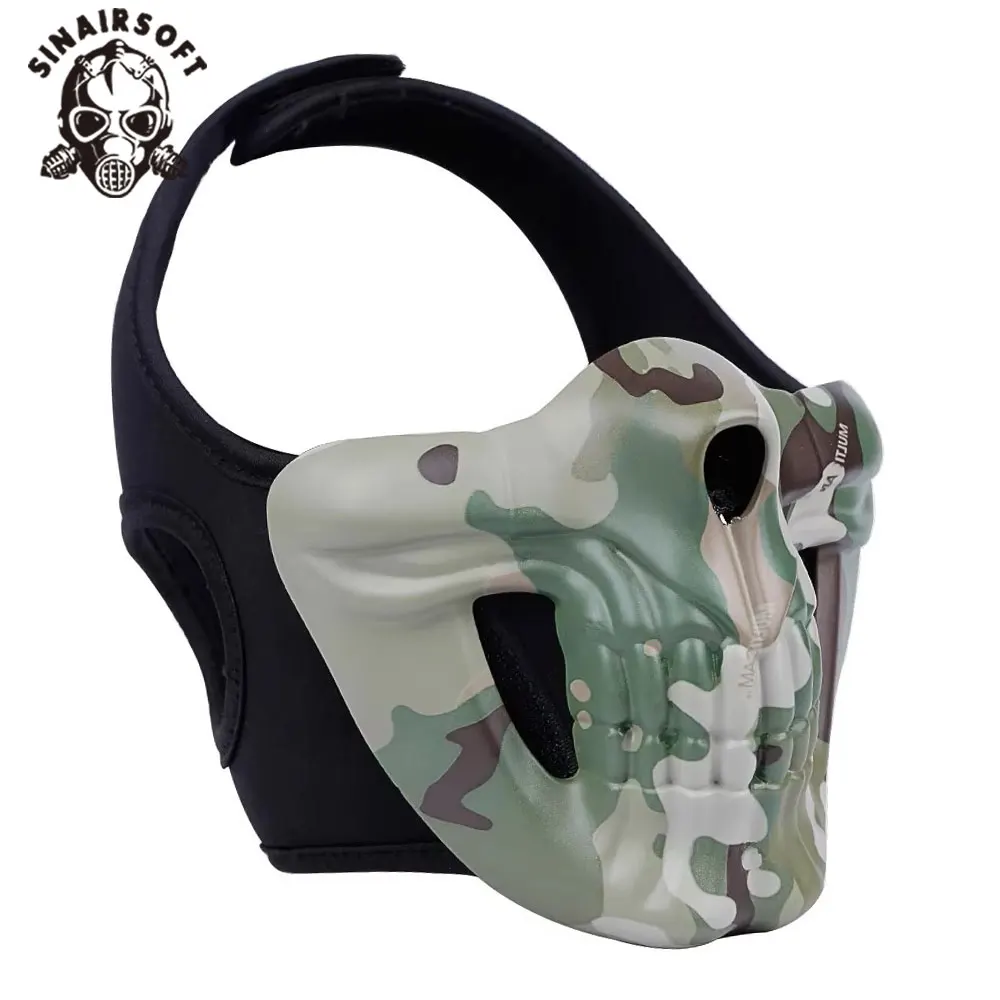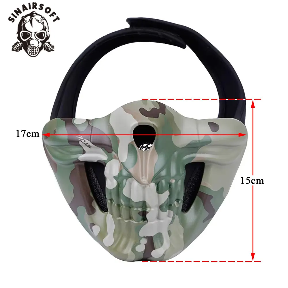 SINAIRSOFT-mascarilla táctica de calavera de media cara de TPU para Airsoft, Paintball, caza, disfraz de Halloween, máscaras protectoras
