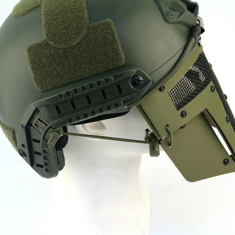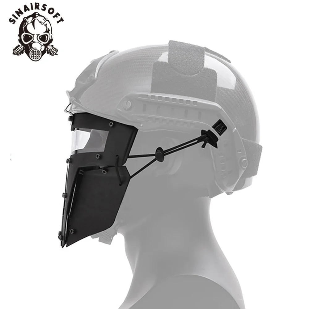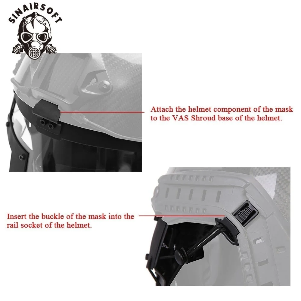 3. Inserte la hebilla de la máscara en el enchufe del riel del casco.