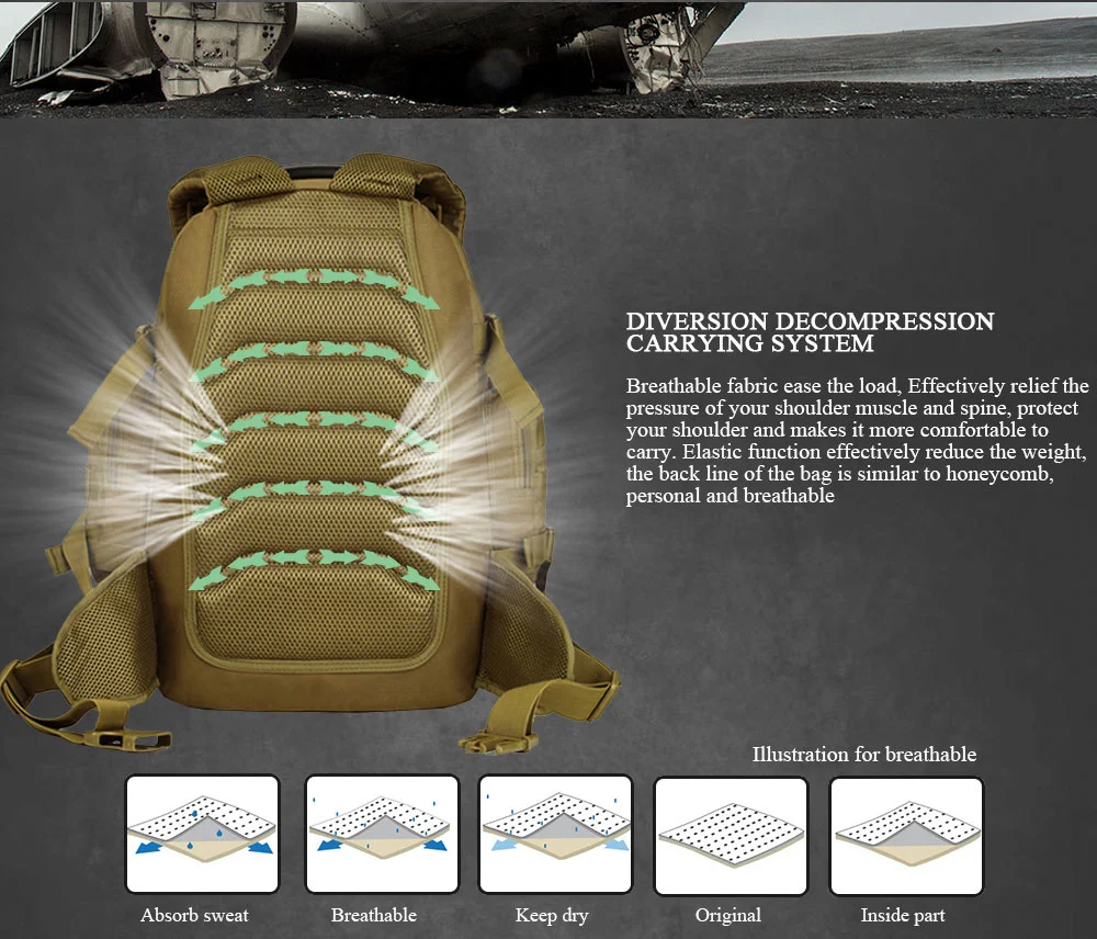 La tela transpirable facilita la carga, alivia eficazmente la presión de los músculos del hombro y la columna vertebral, protege su hombro y lo hace más cómodo de llevar. La función elástica reduce eficazmente el peso, la línea trasera de la bolsa es similar al panal, personal y transpirable1.Original 2. Parte interior 3. Absorbe el sudor 4. Transpirable 5. Mantener seco