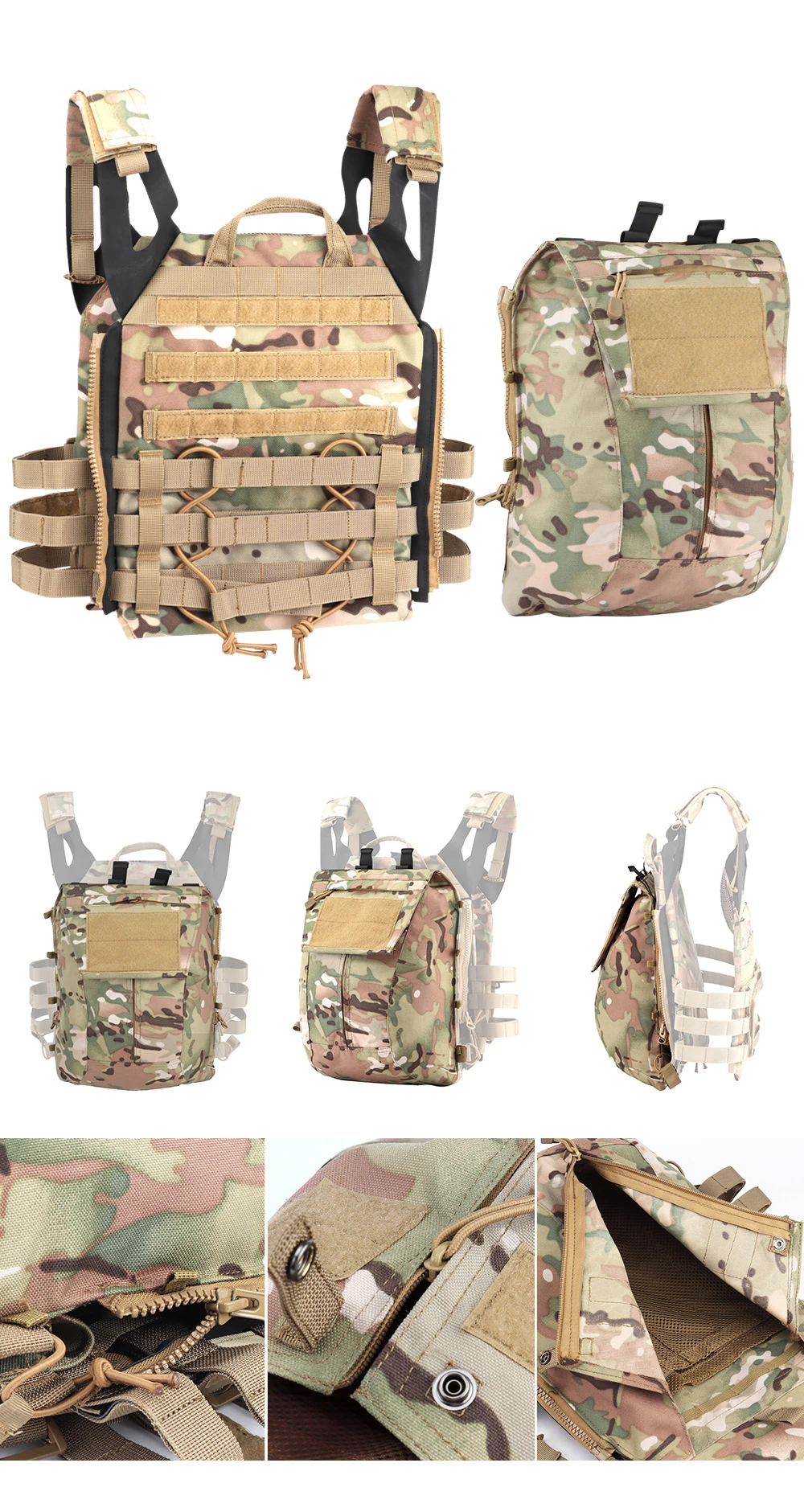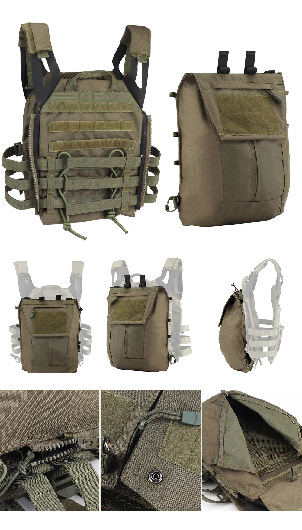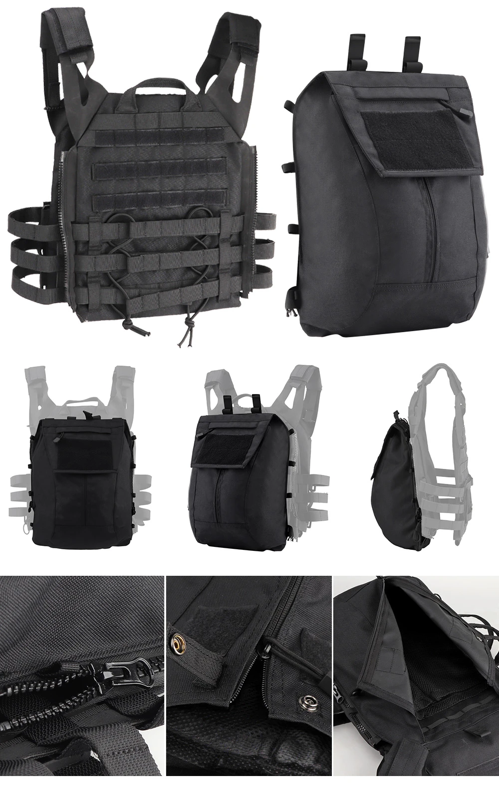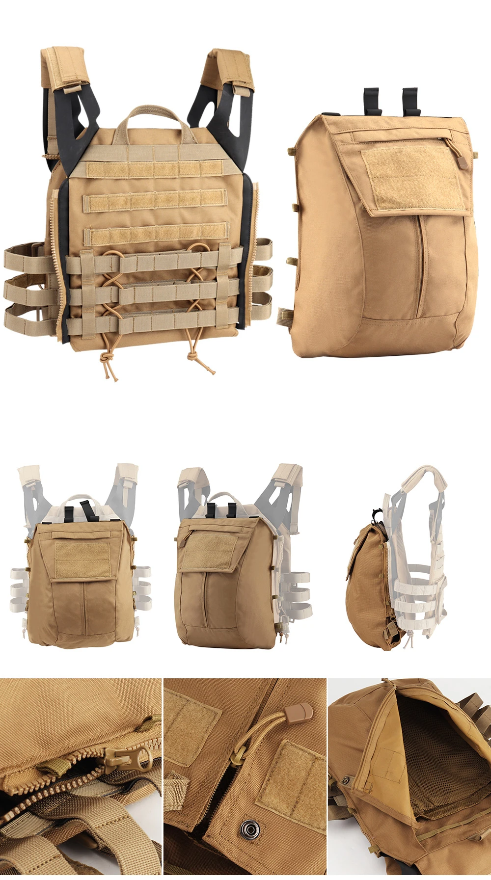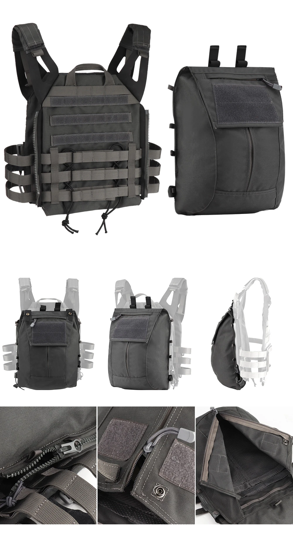El panel con cremallera 2.0 está diseñado para acoplarse al JPC 2.0 únicamente mediante cremallera. Si se fija en AVS y CPC, no solo puede tener una cremallera, sino también 4 hebillas en la parte posterior.