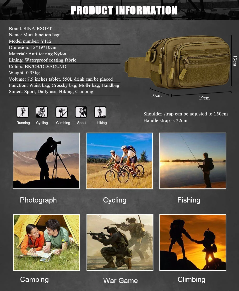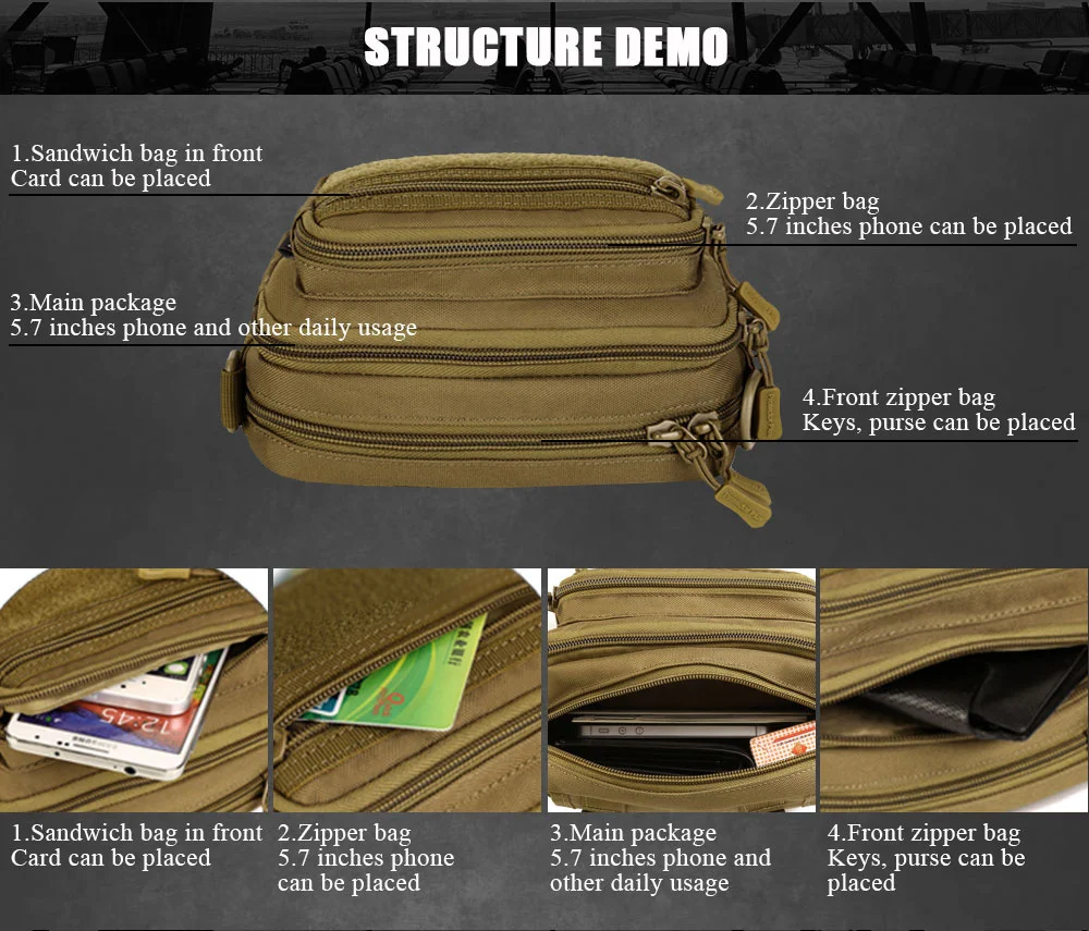 Function: Waist bag, Crossby bag, Molle bag, Handbag