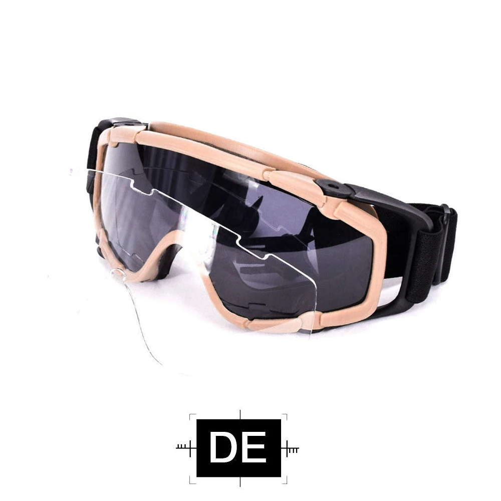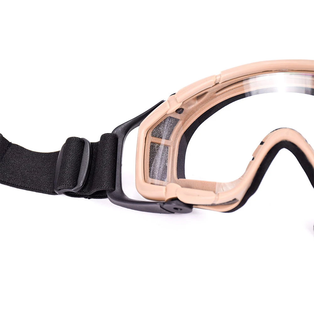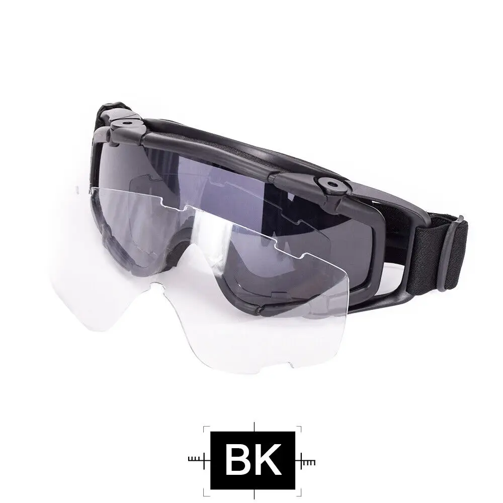 -- Las lentes están hechas de policarbonato grueso, pueden proteger sus ojos de BB, humo, partículas pequeñas, etc. La lente se puede endurecer y recubrir. Lente endurecida, con buena resistencia al impacto y al desgaste. Diseño de curvatura de la lente, previene eficazmente la distorsión de la visión. Marco de material ABS importado