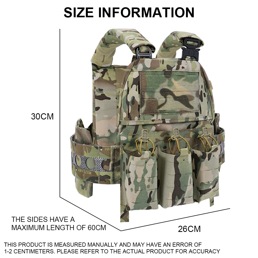 3.El chaleco es adecuado para placas antibalas SAPI medias o 9X11.29, que deben comprarse por separado.