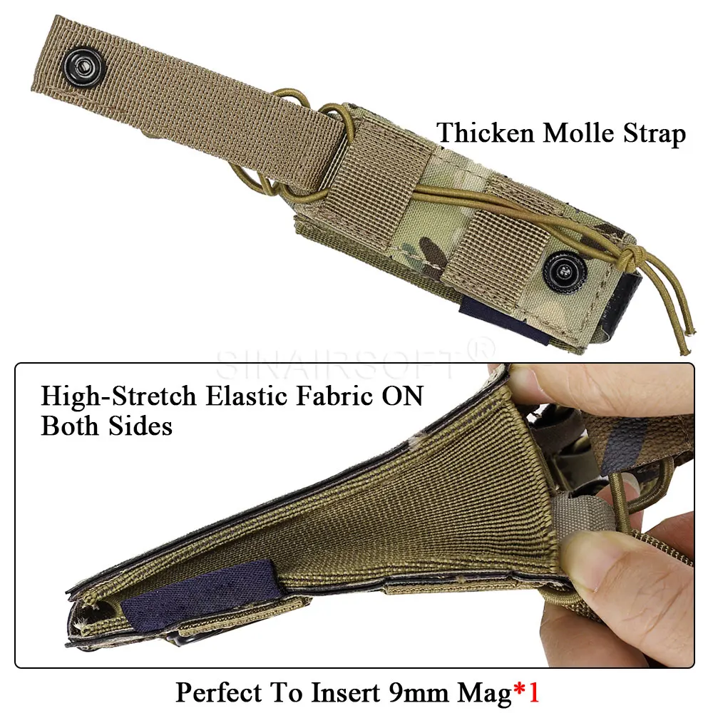 SINAIRSOFT Bolsa táctica LSR de 9 mm para revistas, portador individual MOLLE, bolsa cortada con láser