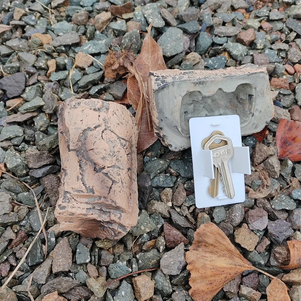 Gire la piedra y desenganche la jaula de seguridad para ocultar las llaves del coche y de la casa.