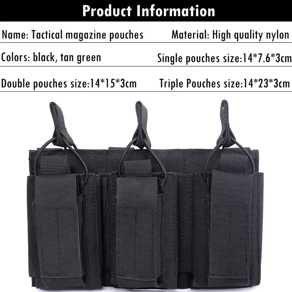 Sistema de bolsa de cargador Triple Molle, Clip de revista Universal para M4, M14, M16, AK, AR, Glock 1911, bolsa de munición de 9mm