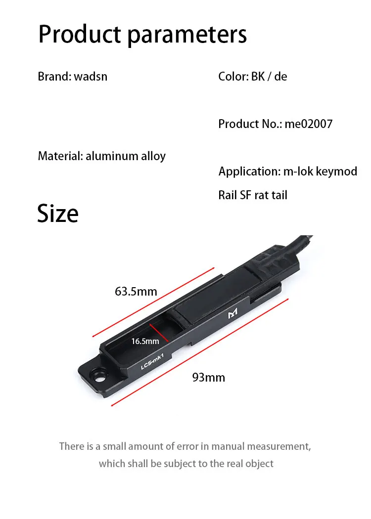 El soporte Mlok permite una instalación rápida y sencilla, lo que lo convierte en un complemento conveniente para su linterna.