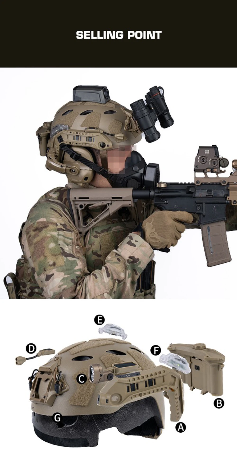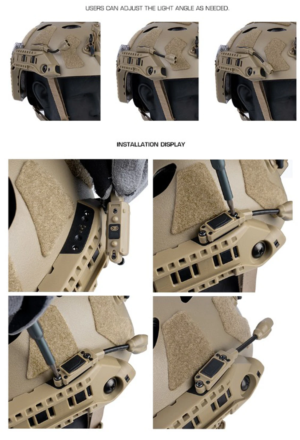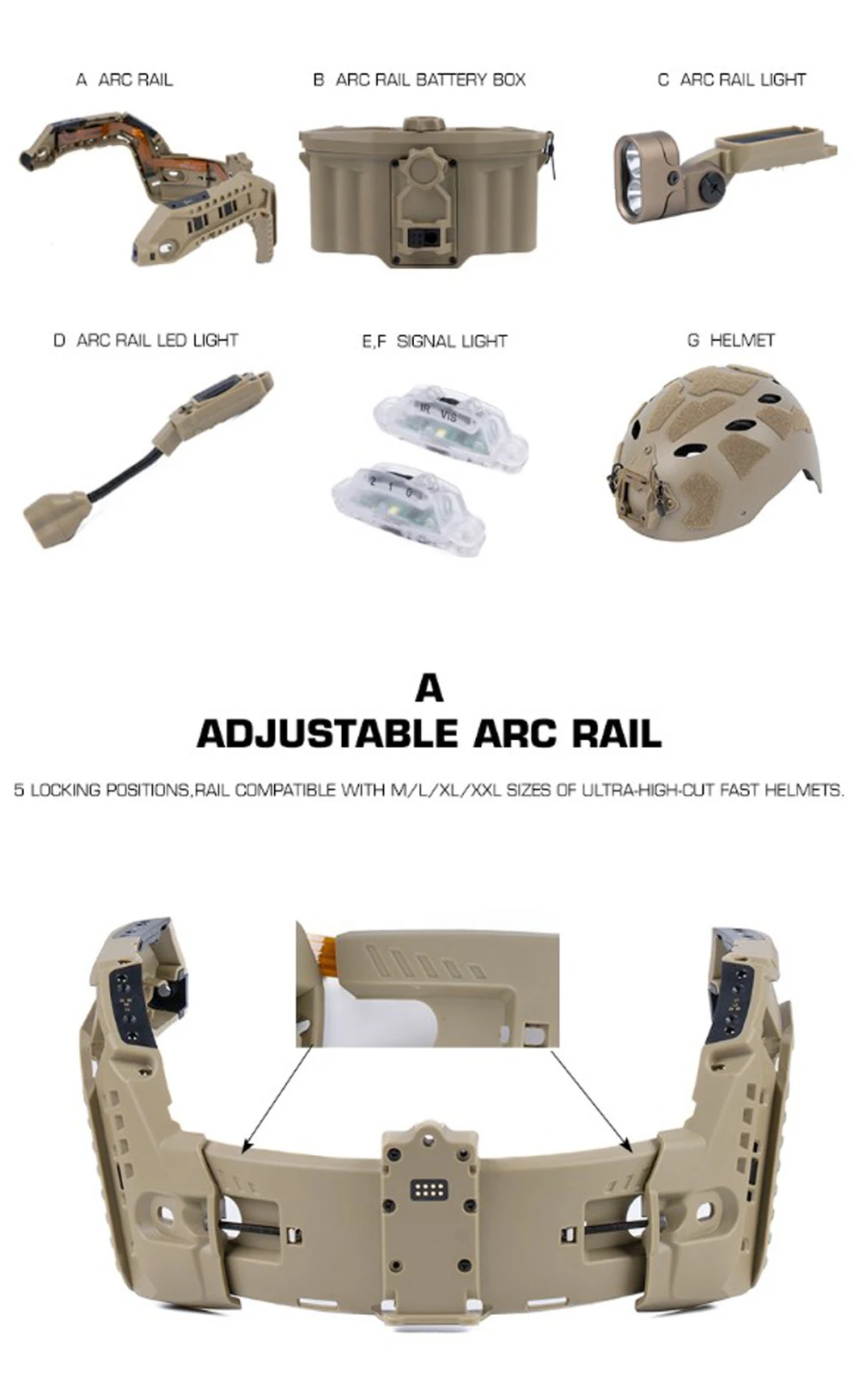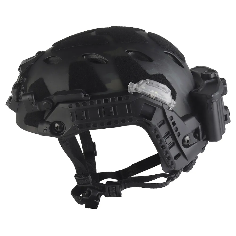 Versión de lámpara completa para casco táctico con sistema de alimentación de riel ARC modular de integración, lámpara de identificación IR, linterna LED, luz de señal doble
