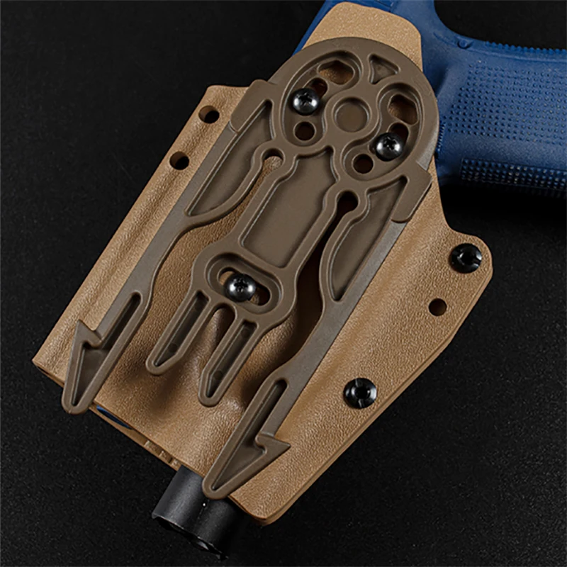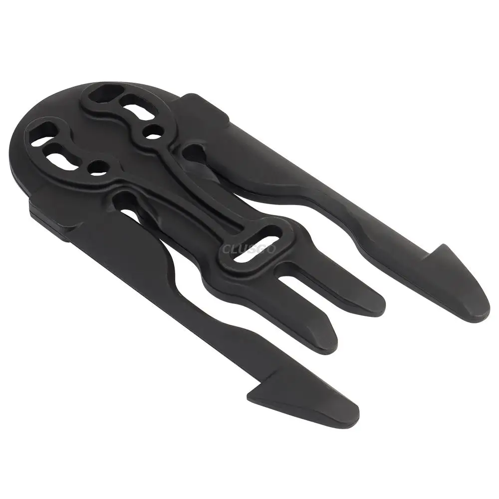 La horquilla de bloqueo táctico se monta directamente en la parte posterior de las fundas con el patrón de 3 agujeros