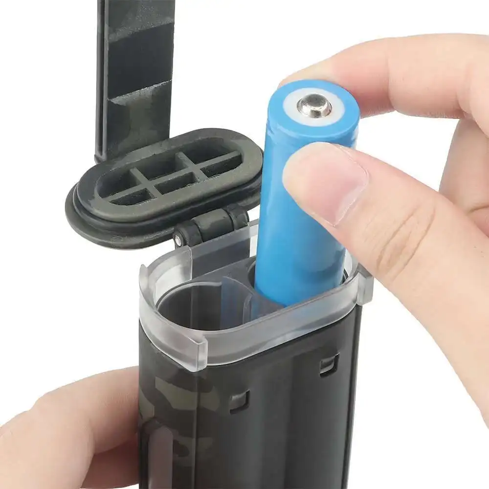 Caja de almacenamiento de batería recargable multifunción táctica, estuche impermeable de 2 orificios para equipo de supervivencia pequeño AA/AAA/CR123