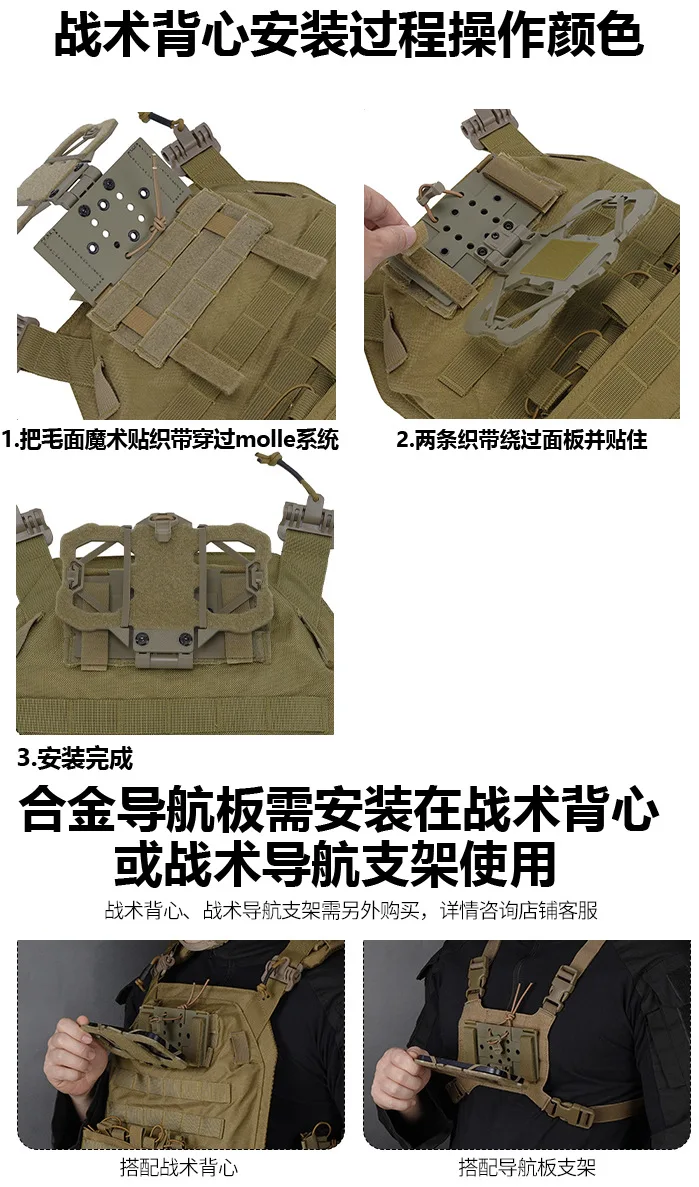 Sistema molle de aleación plegable táctico, montaje en Terminal, tablero de navegación, soporte para teléfono móvil para colgar en el pecho