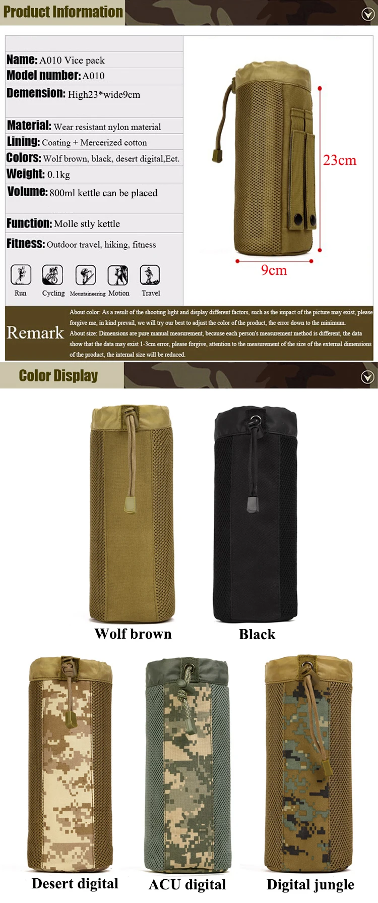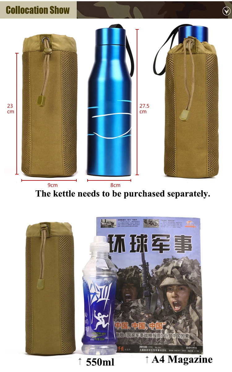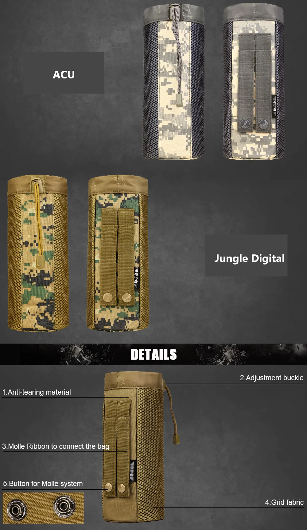 Sistema MOLLE, botella de agua individual, bolsas de escalada, bolsa para hervidor, bolsa de agua táctica duradera para hombres, viaje, senderismo