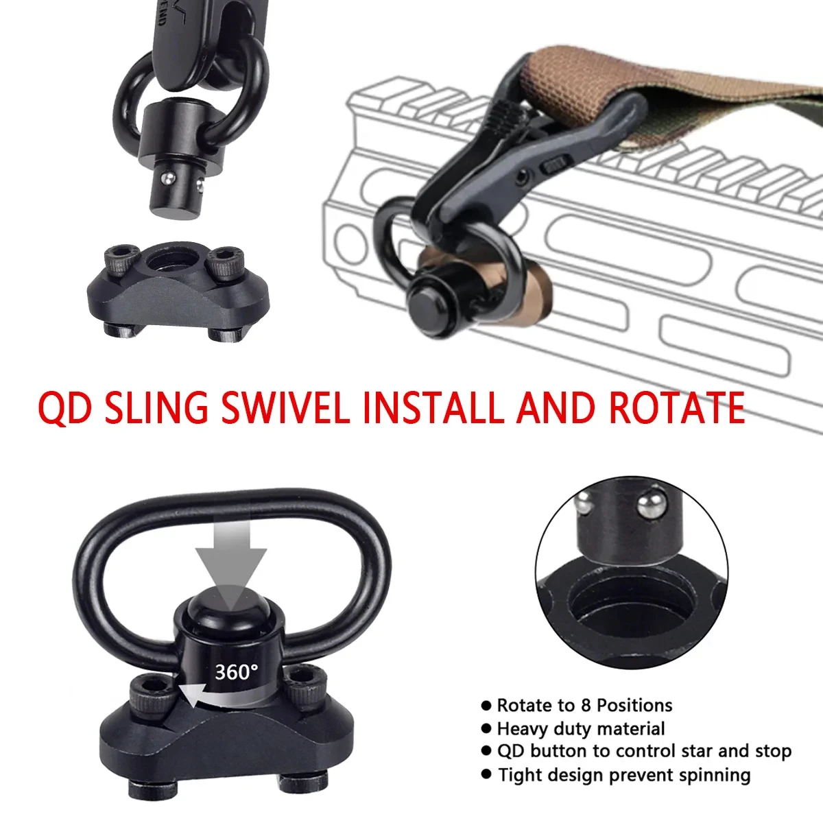 Sling Swivel se puede girar 90 grados y detenerse soltando el botón QD para controlar la posición.Los diseños antirotación evitan que los giratorios giren.