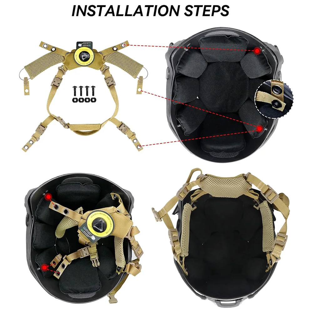 COMPATIBILIDAD VERSÁTIL - Mejore la seguridad y el rendimiento de su casco con nuestro kit de acolchado con sistema de forro para casco de combate. Diseñado para cascos tácticos ACH, FAST, MICH, IBH, AF, PASGT, MT, PASGT y Wendy y cascos de airsoft MT, de tipos de cascos. Adapte la ubicación de las almohadillas dentro de su casco para lograr un ajuste personalizado que garantice la máxima comodidad y absorción de impactos.