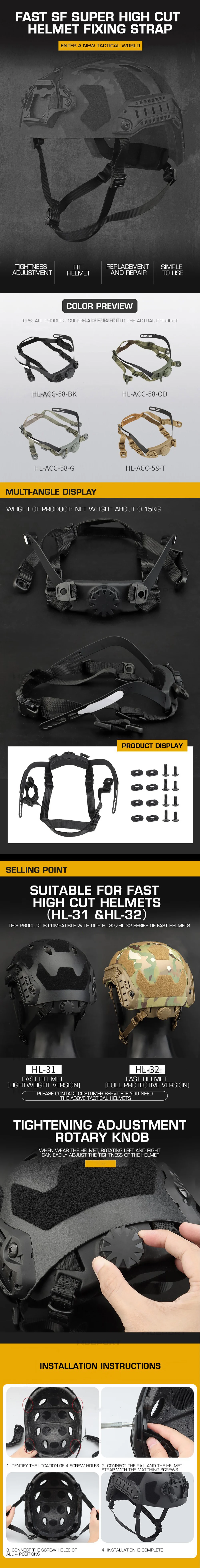 Sistema de suspensión interior para casco FAST SF, casco de corte alto, correa de bloqueo de cabeza ajustable, accesorios para casco Airsoft de combate y caza
