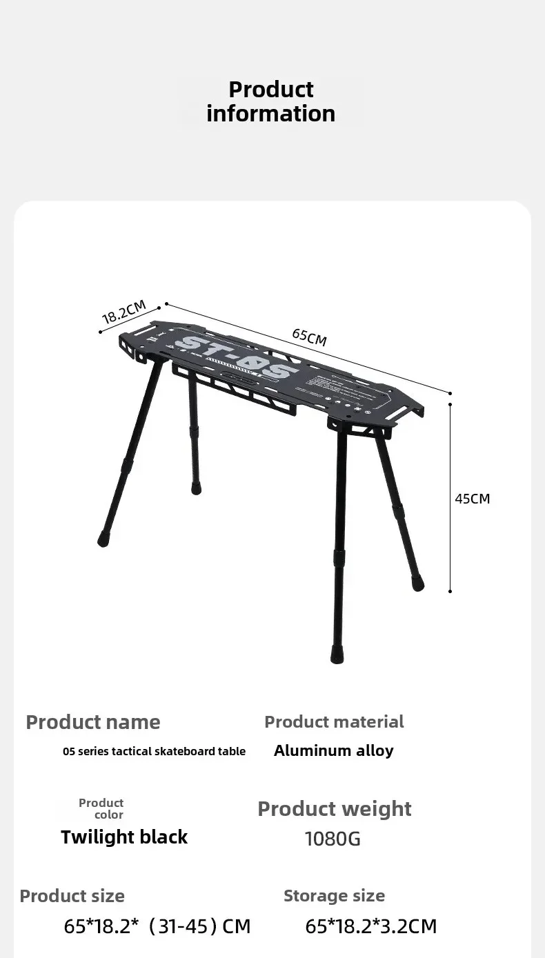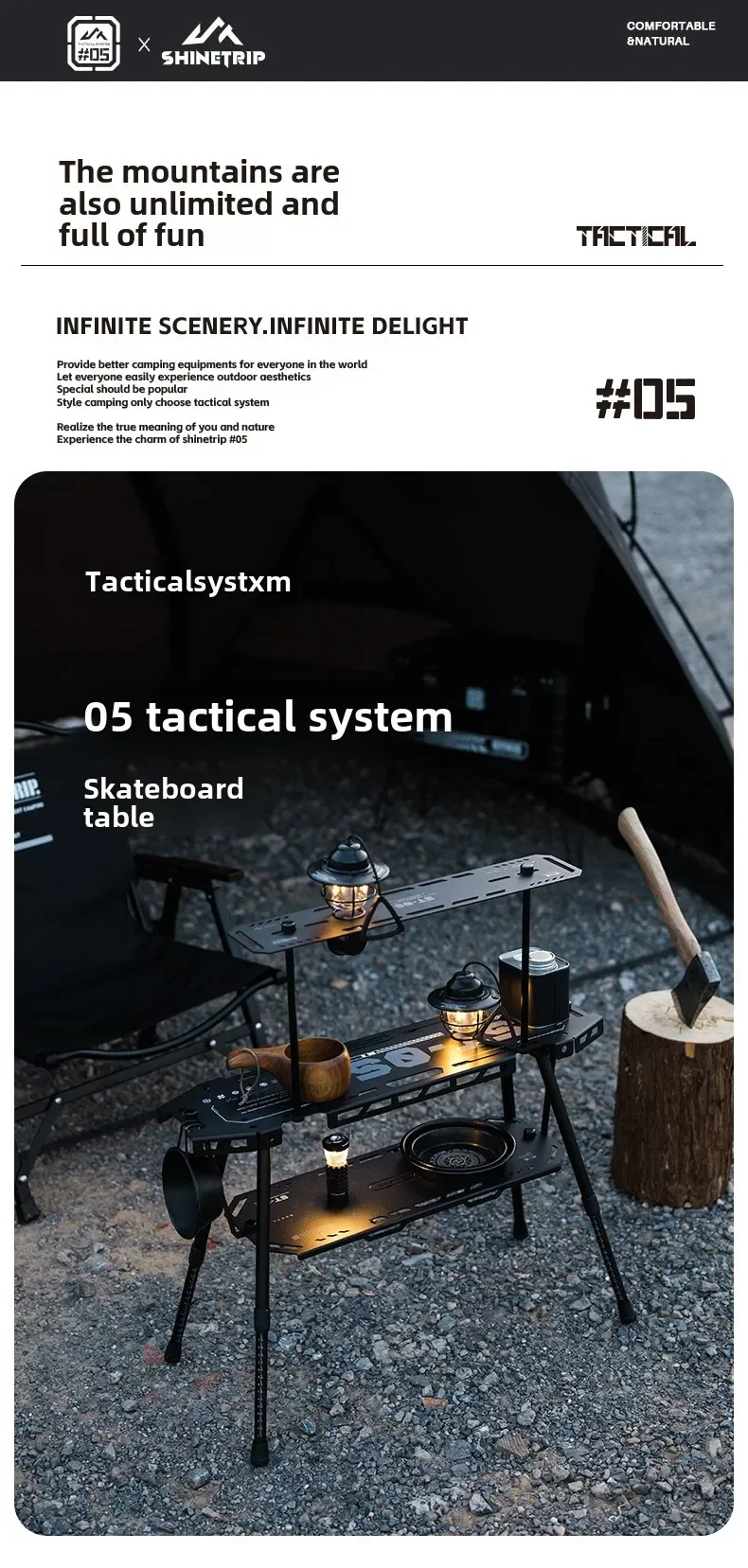 Sistema táctico mesa de Camping al aire libre 05 mesa de monopatín de aluminio almacenamiento plegable portátil expandible diversificado