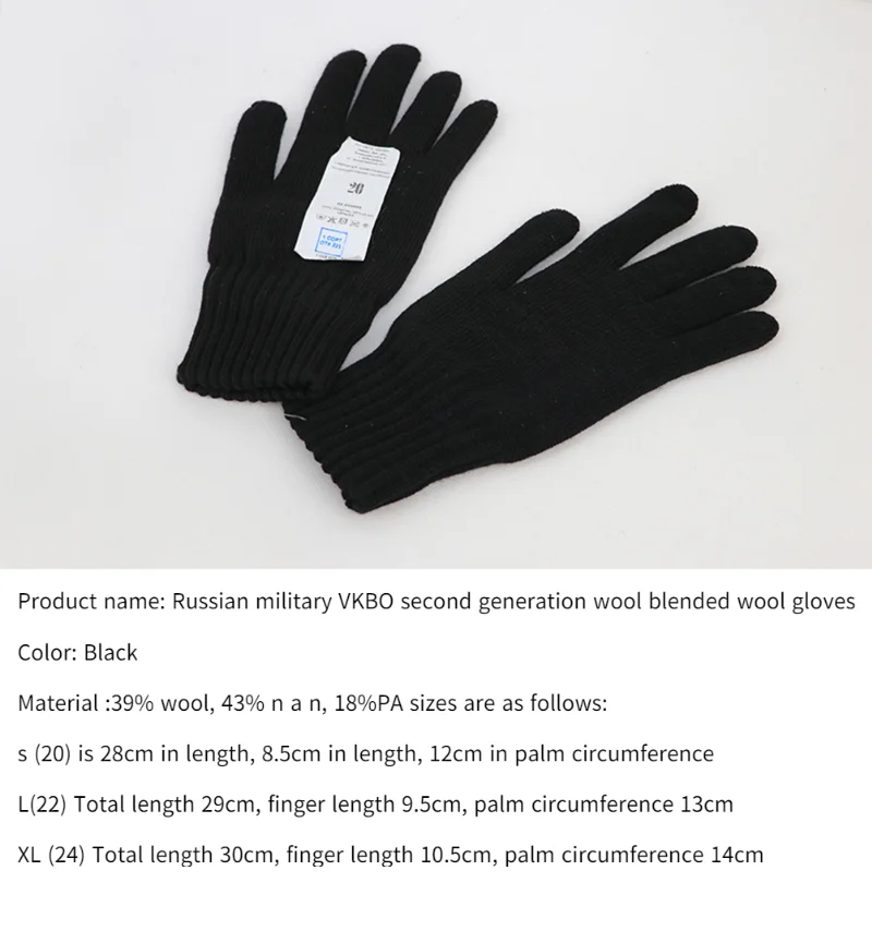 Sistema Táctico VKBO para exteriores, guantes de hilo de lana fría humana pequeña, doble lana negra, Verde