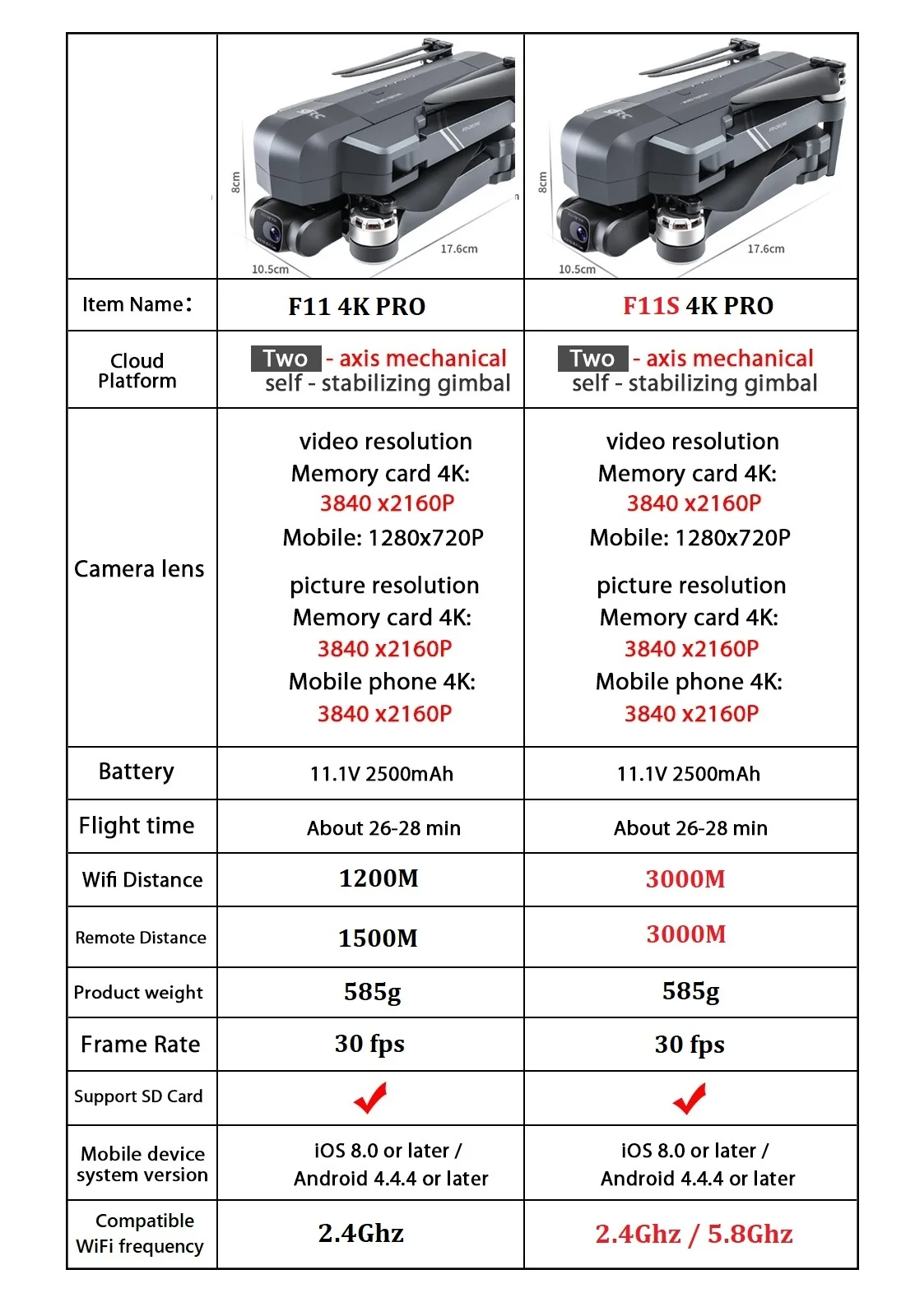 F11SWifi distancia de transmisión de vídeo: 3000m (exterior y sin obstáculos, depende de las condiciones y del dispositivo móvil)