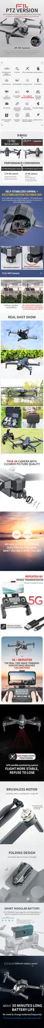 Cámara: Gimbal de estabilización electrónica de 2 ejes Cámara Real 4K