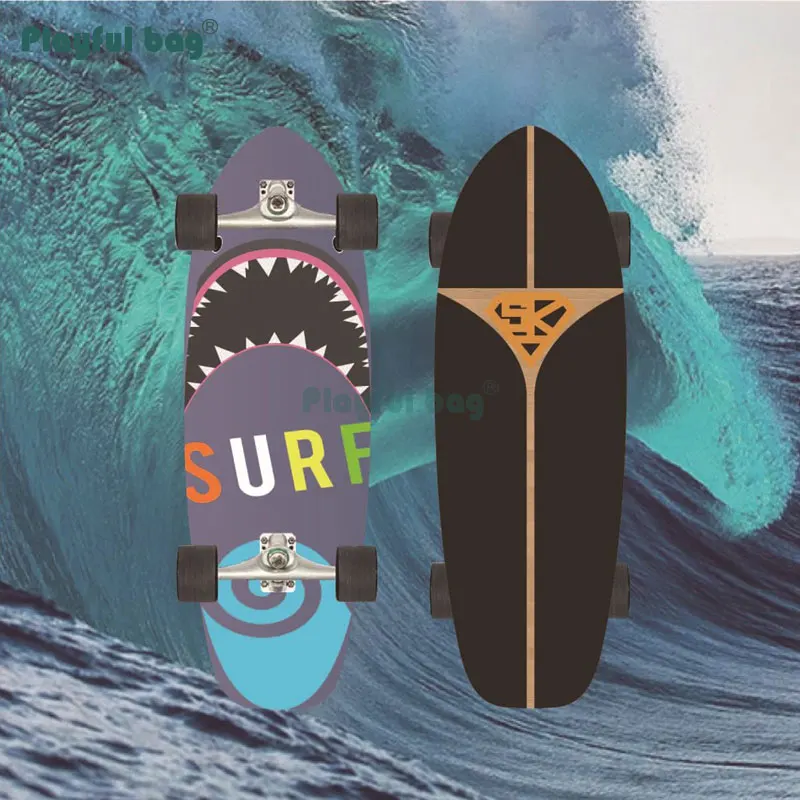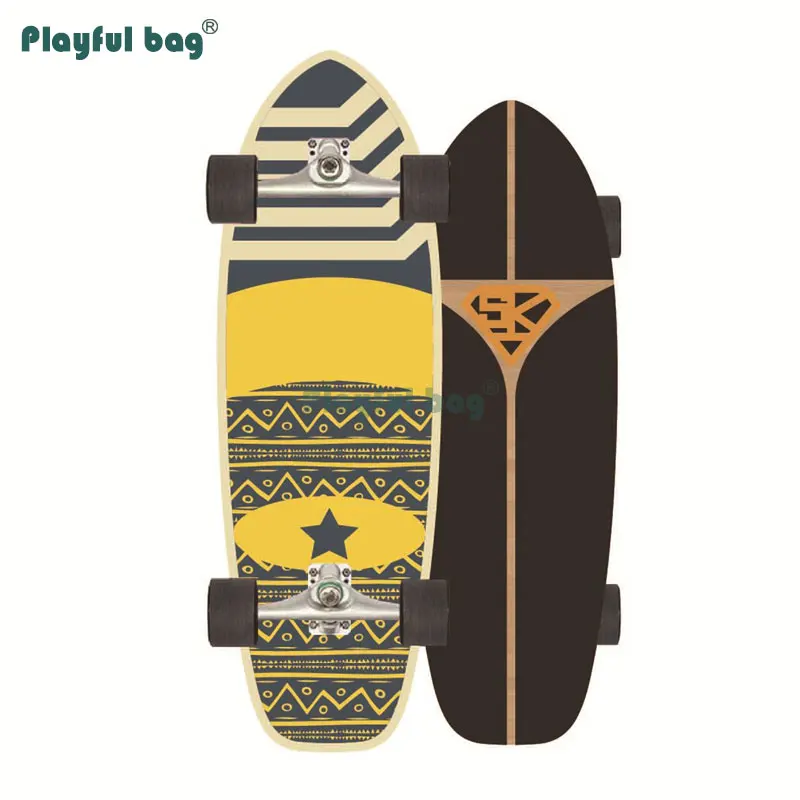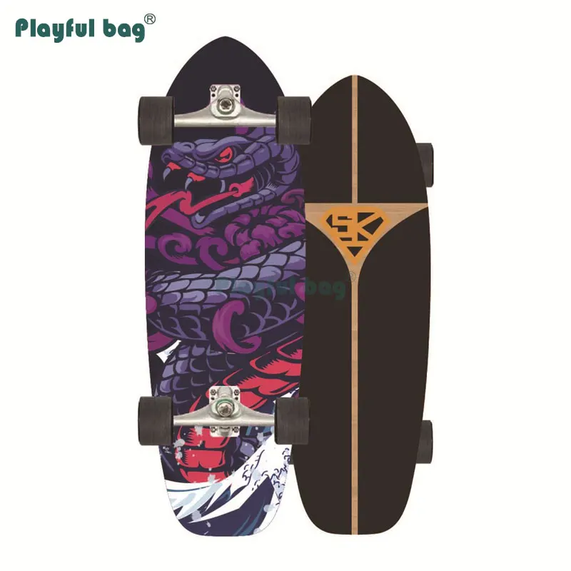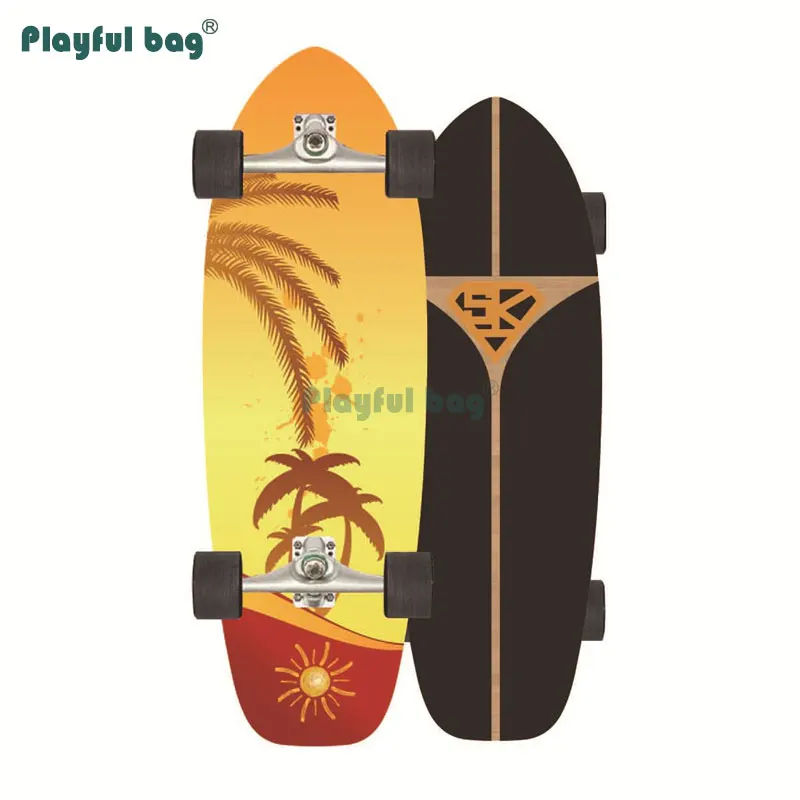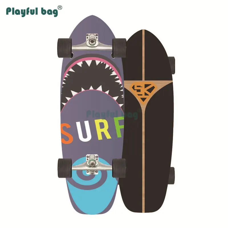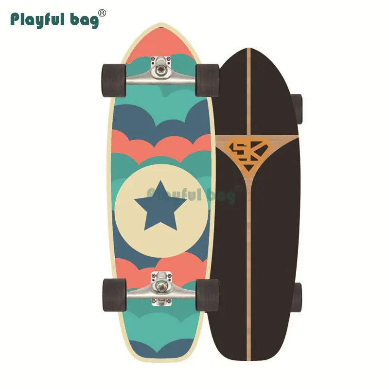 Nombre del producto: patineta de surf terrestre Tablero: Todo el arce del Norte Personas aplicables: profesionales, jugadores principiantes, principiantes, etc. Tamaño: 75cm * 23,5 cm * 12cm Peso: toda la tabla 2,75 KG Especificaciones del puente: eje de dirección CX4 tallado 78ASHR alta resistencia PU shock Ruedas: 65x51mm Adecuado para todo tipo de acciones de barrido callejero y bombeo. Rodamiento: rodamiento silencioso dedicado de alta velocidad Peso: 300 kg