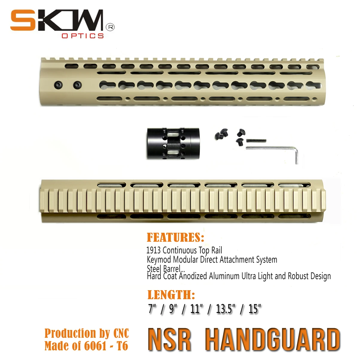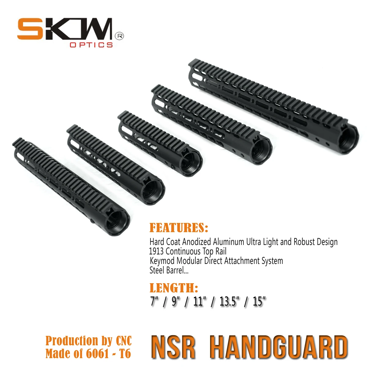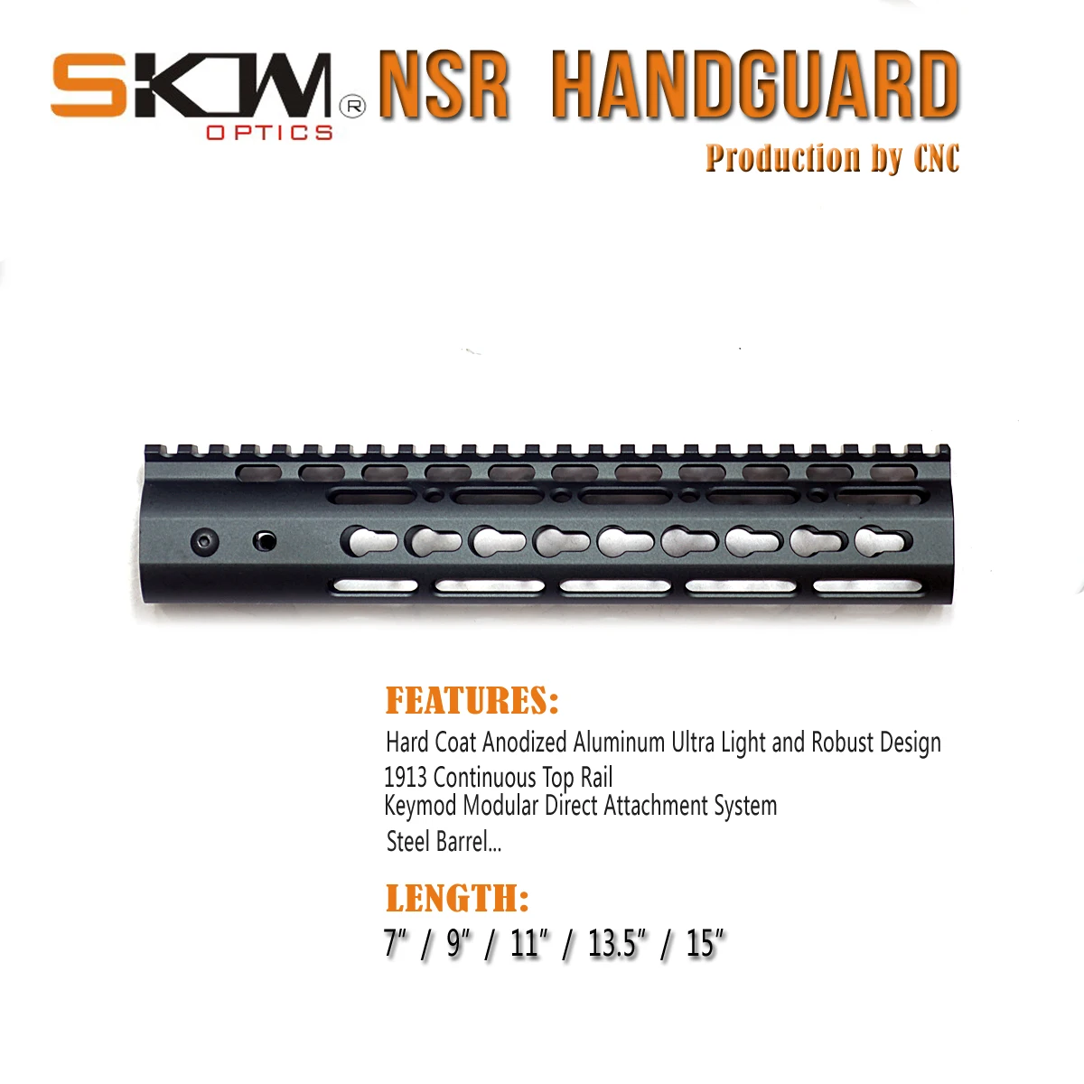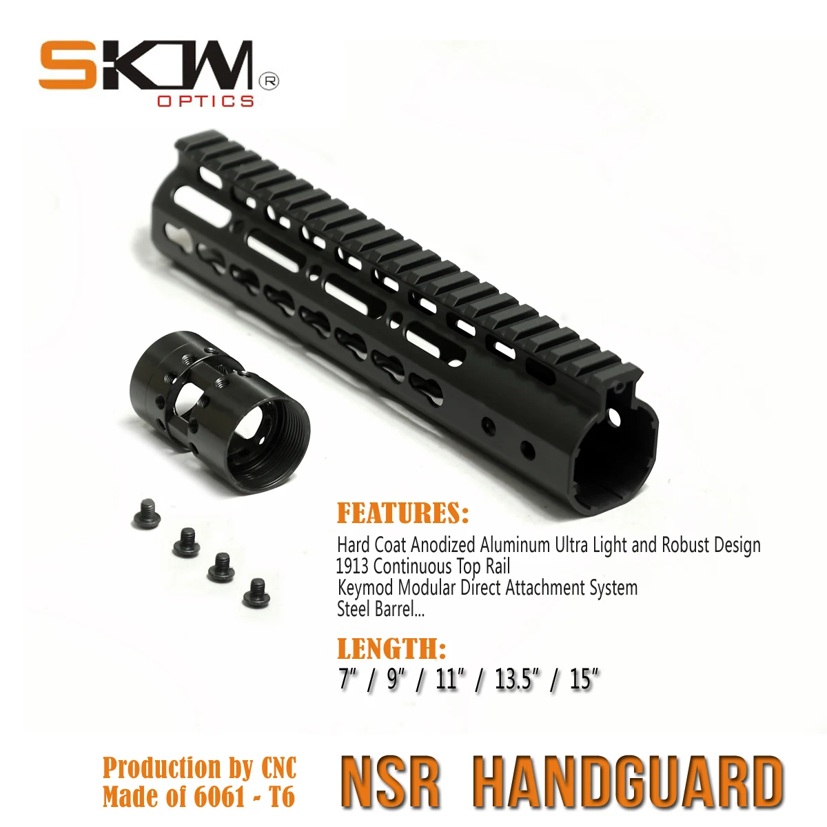El NSR es la opción de forzado flotante libre más ligera y pequeña para la familia AR15/M16.El sistema KeyMod / M-LOK ofrece una plataforma de montaje para una variedad de accesorios y componentes (futuro).T