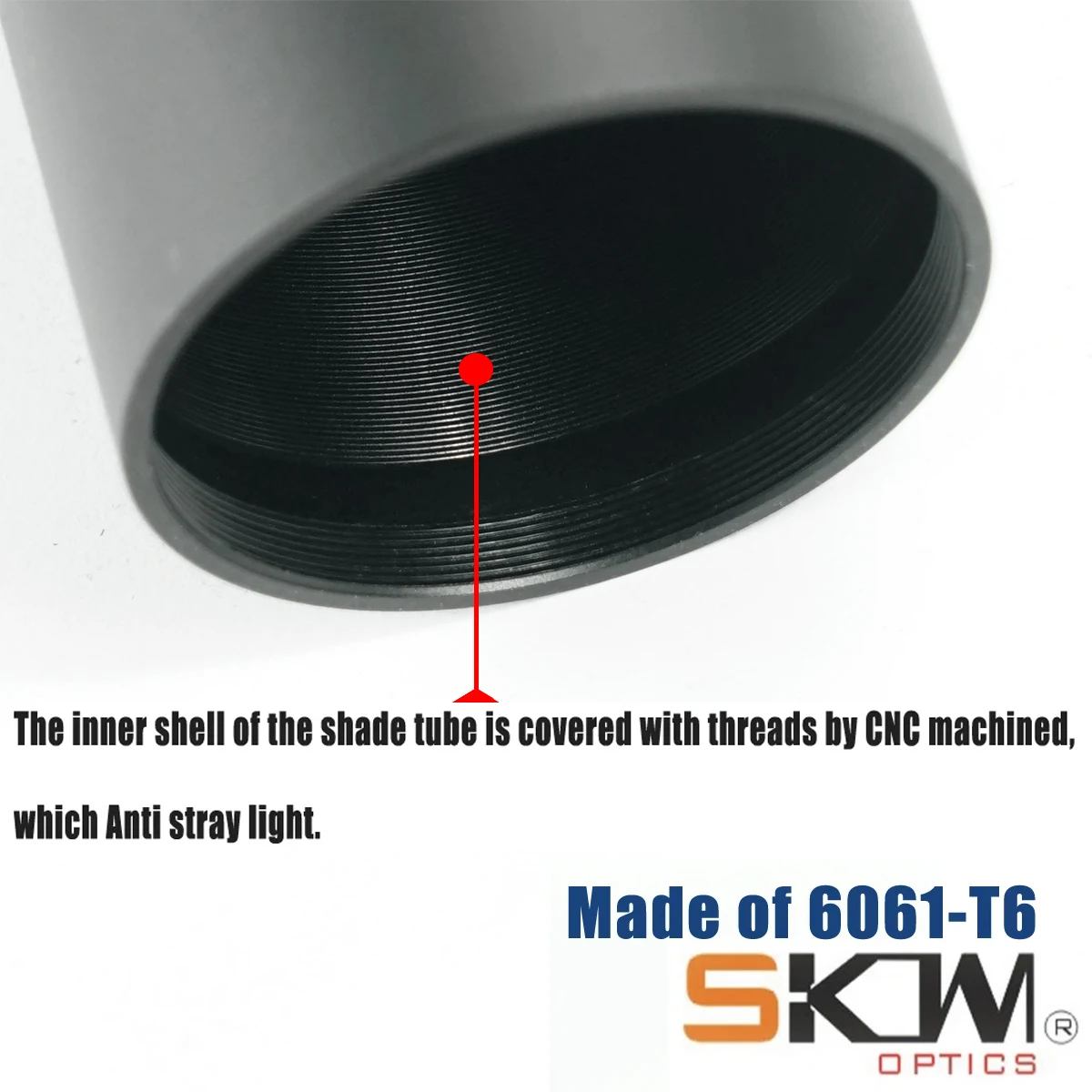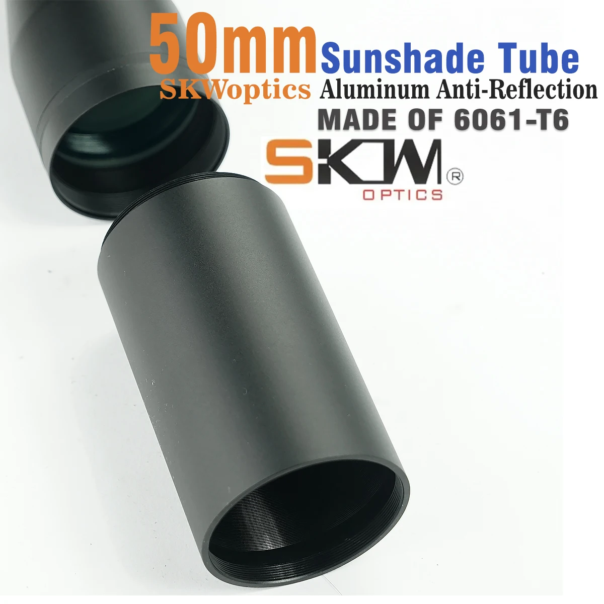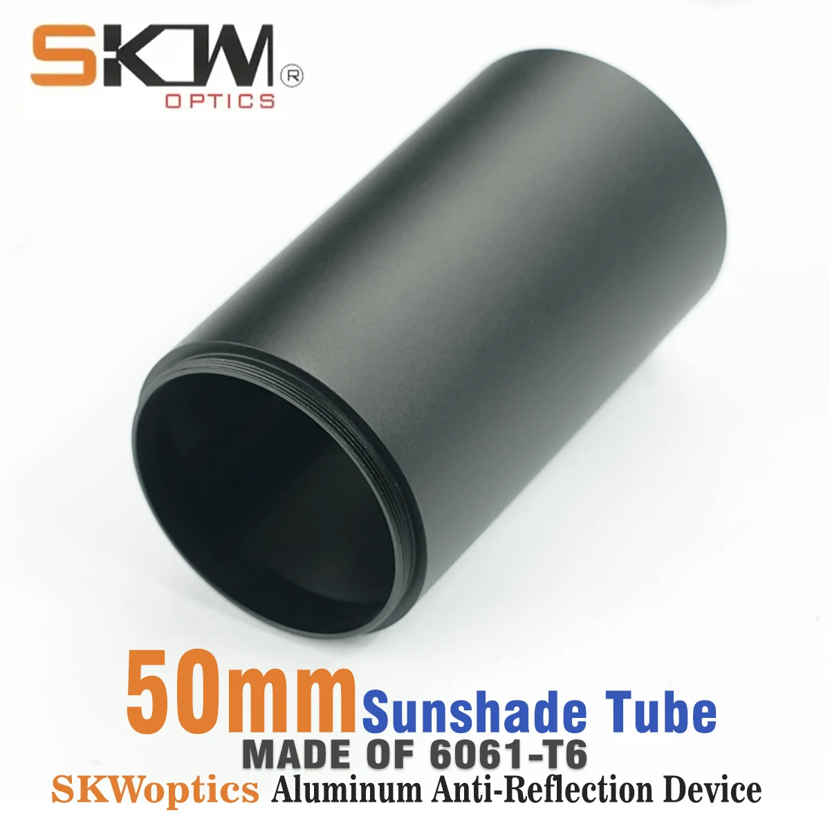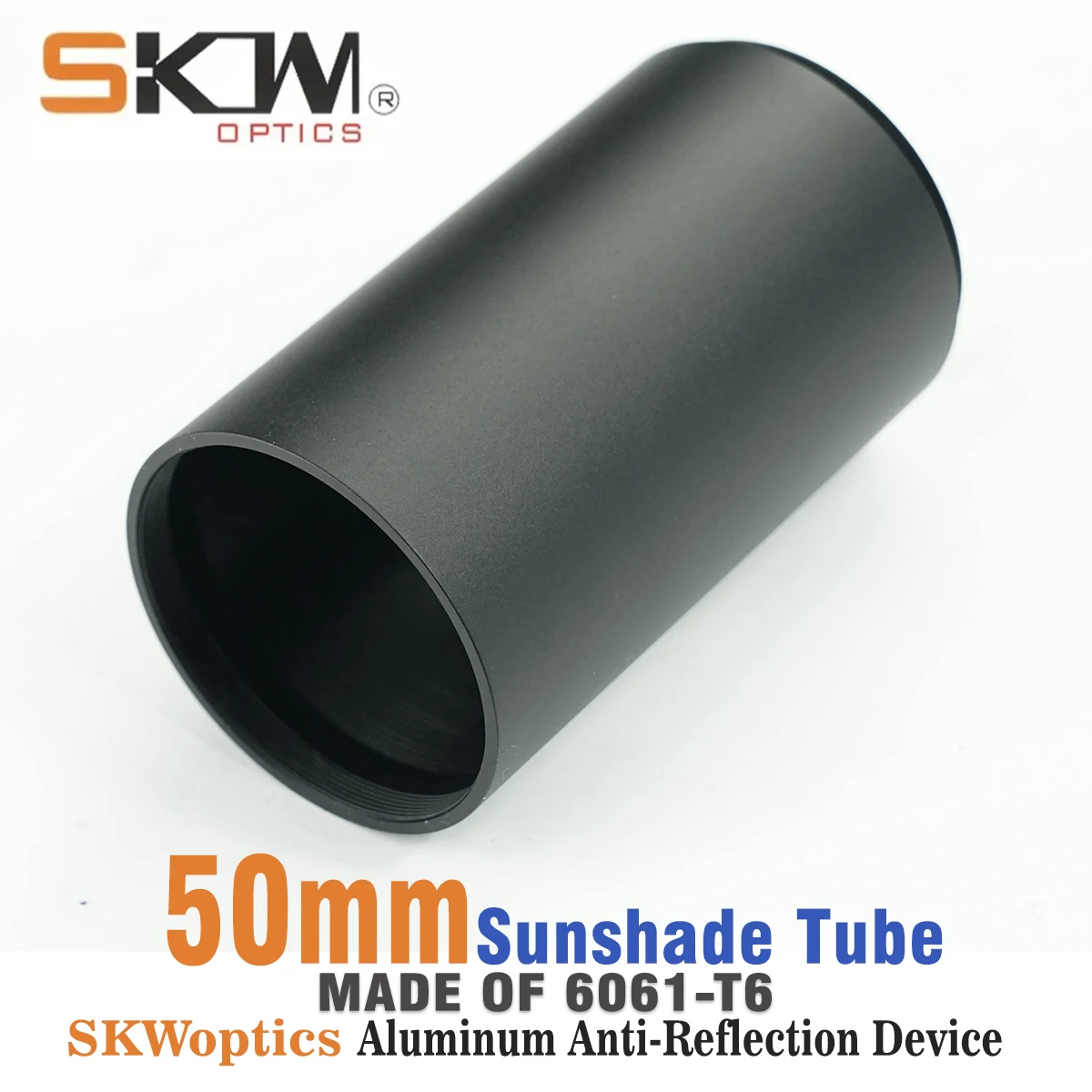 Para visores SKWoptics de 56mm. SKWgear tubo de sombra antirreflectante para SKWoptics 50mm objectlens Riflescopes elimina el deslumbramiento del juego. Este dispositivo antirreflectante está hecho de aluminio y se rosca en el extremo del objetivo de la mira para un ajuste seguro. Pesa 3,2 Oz y añade 100mm. A la longitud.