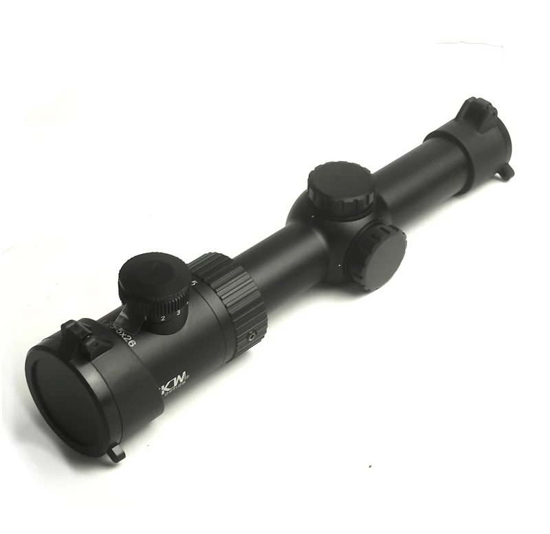Un alcance de rifle SKWoptics 1,25-5x26 XMOA-G;un par de tapas de lentes;un trozo de paño para lentes;Un soporte de una sola pieza;Un anillo de nivel de agua.