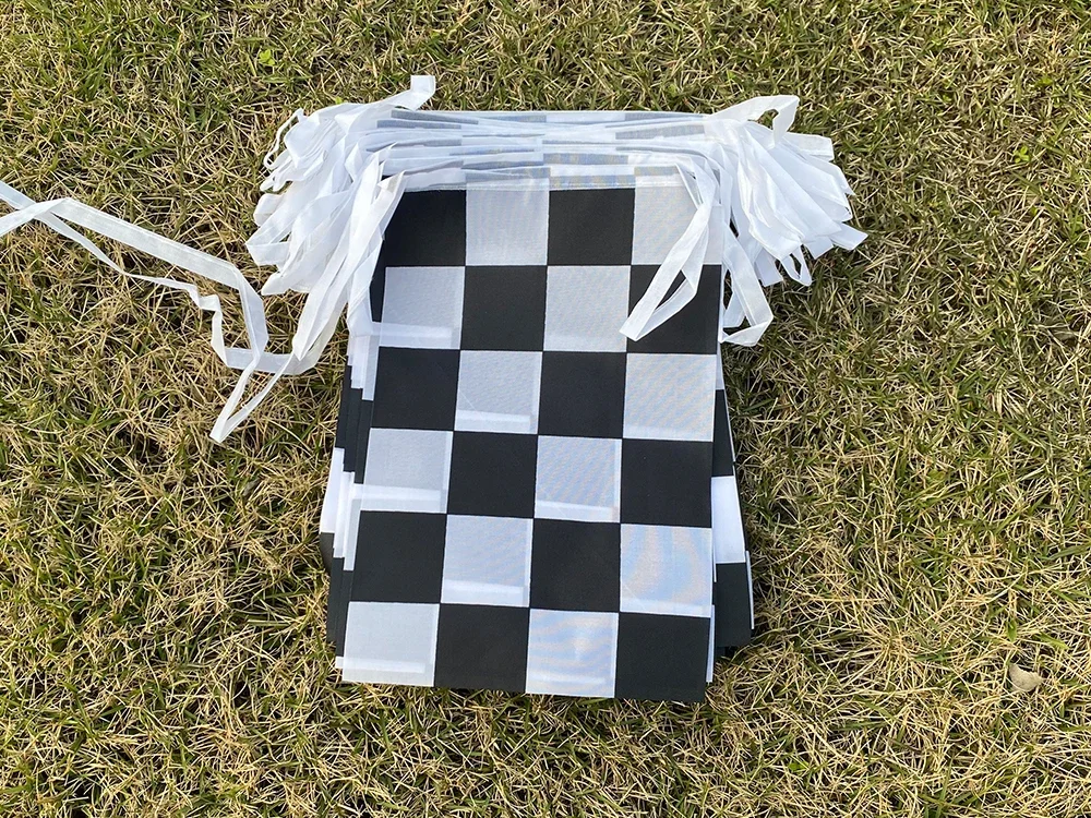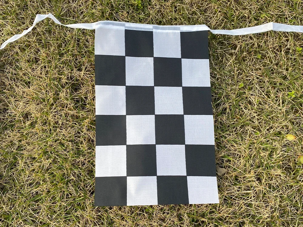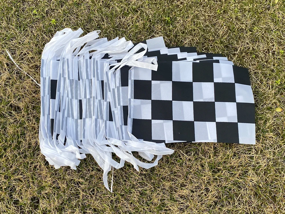 Banderas SKY 14x21cm 20 unids/lote, pista de fiesta de carreras, línea de acabado de coche, banderas de hilo blancas y negras para decoración de fiesta de Festival