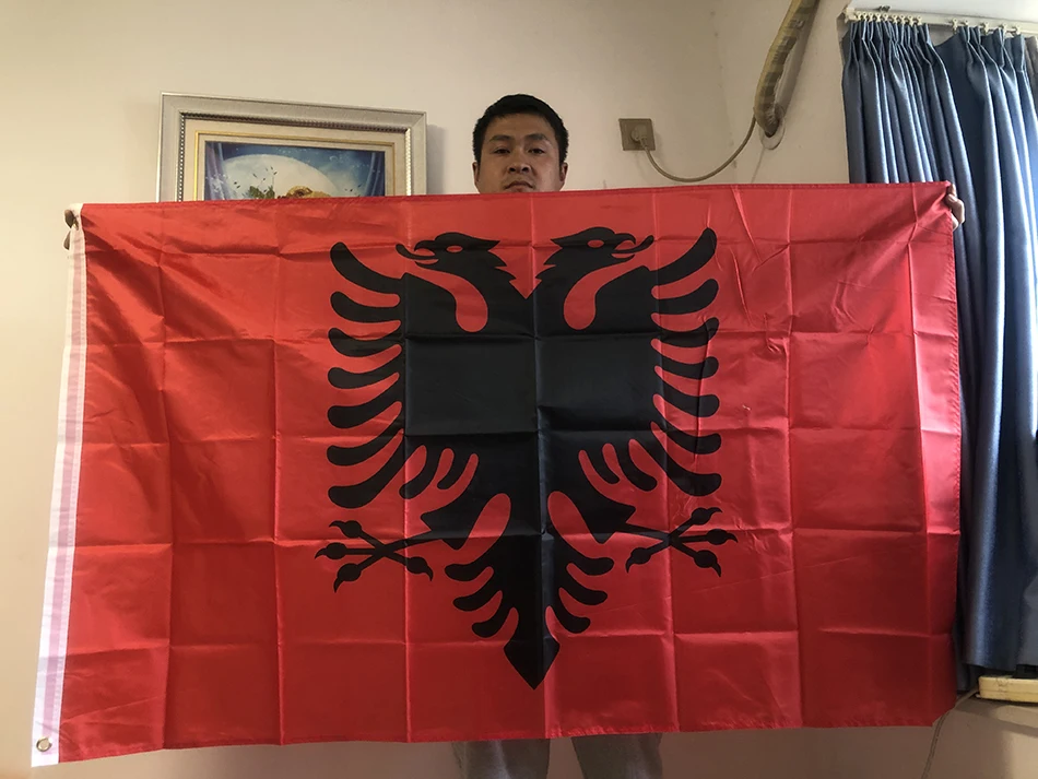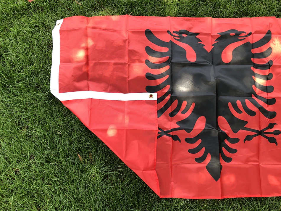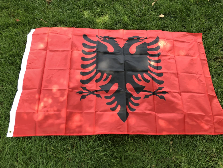 SKY FLAG Albania Bandera 3x5 pies Bandera de Albania 90x150cm Alta calidad Doble impreso colgante Poliéster Albania Bandera nacional