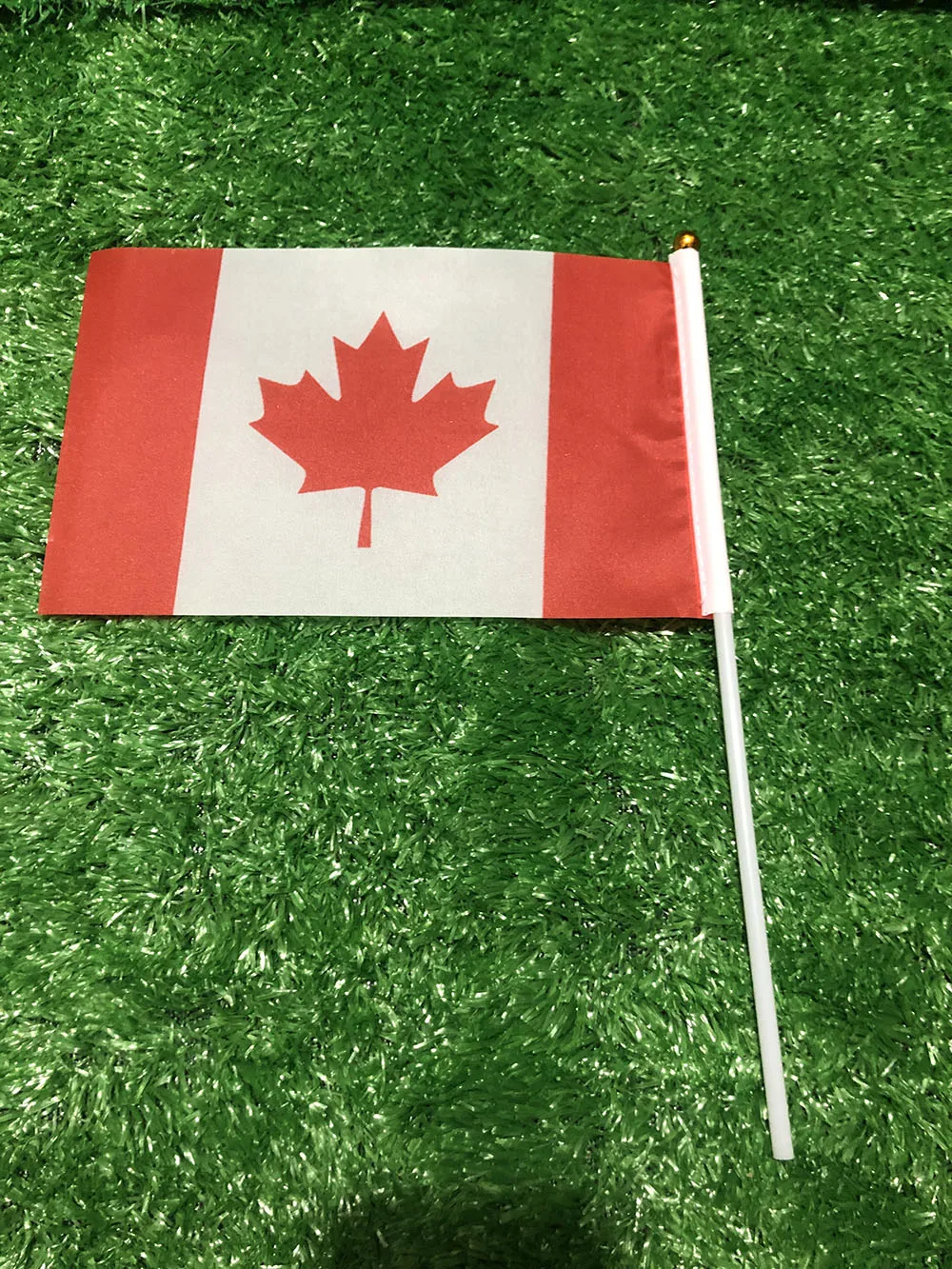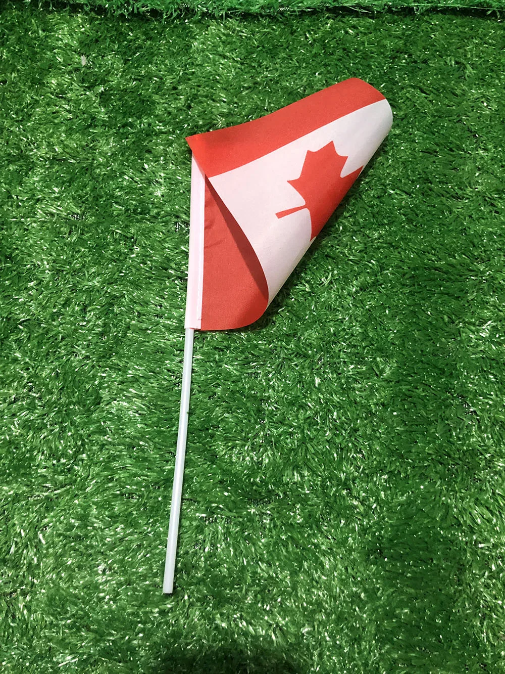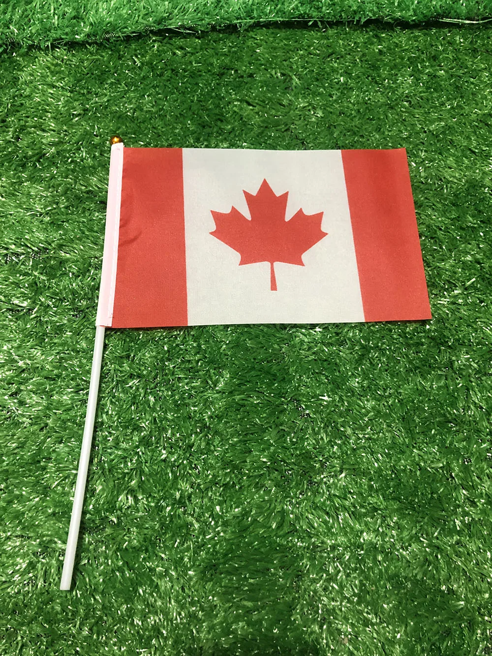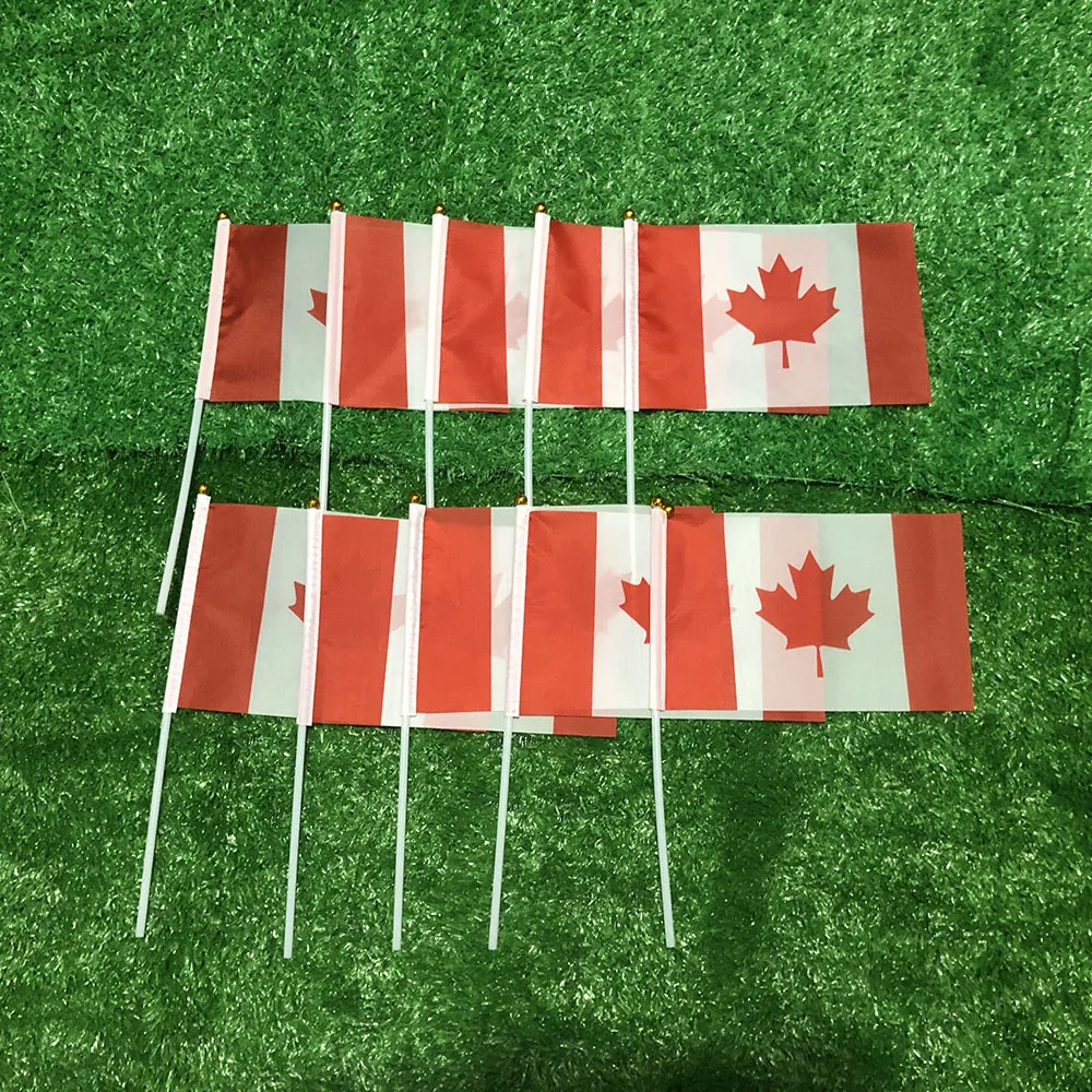 SKY FLAG bandera de mano de Canadá 14x21cm 100 Uds poliéster doble penetración lateral bandera de mano de Canadá con poste de plástico para decoración