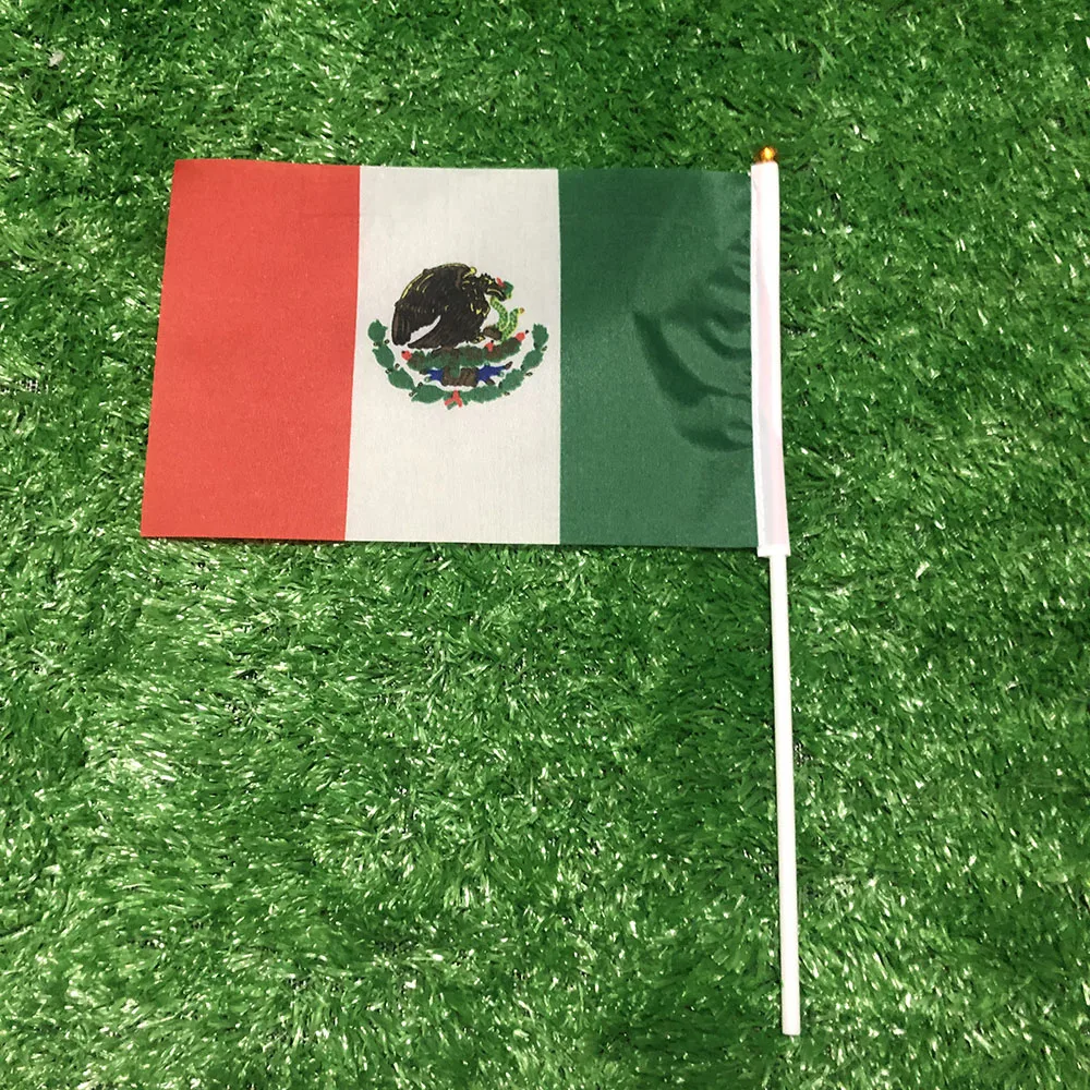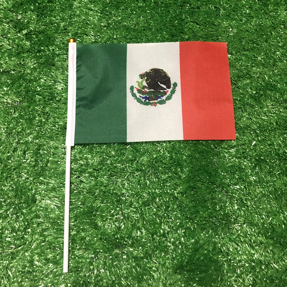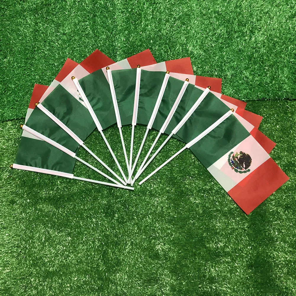 Bandereta de mano de México SKY FLAG, 14x21cm, 100 Uds., poliéster, doble penetración lateral, bandera de mano de México para decoración
