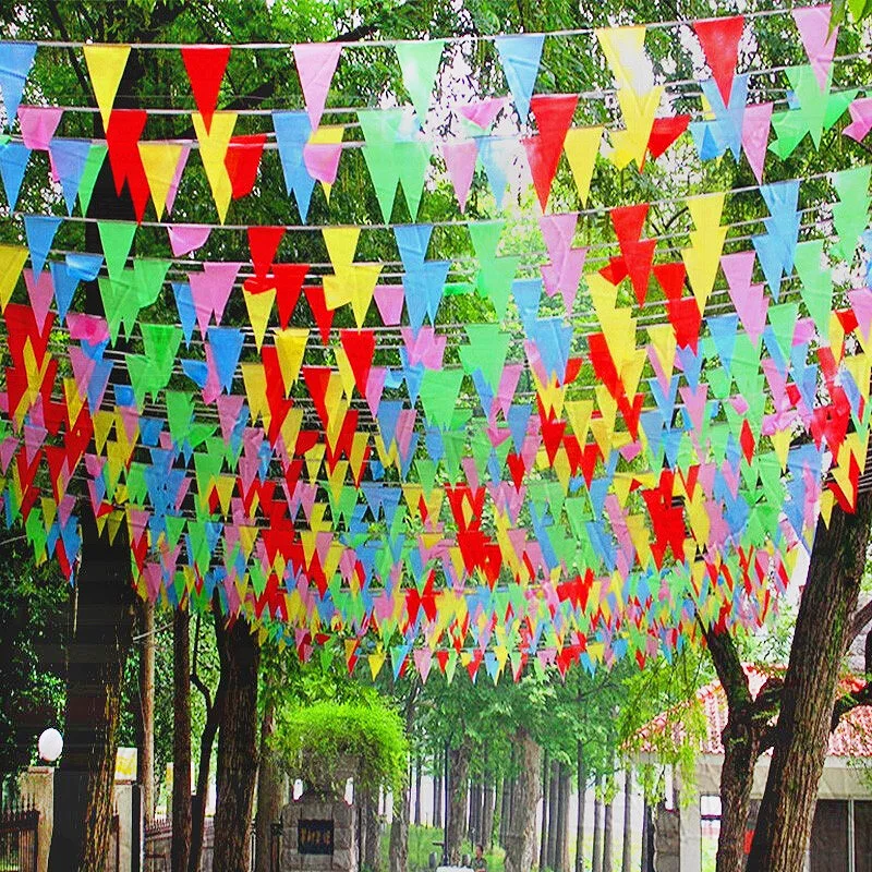 SKY FLAG 14x21cm 80m /20x30cm 100M banderines de tela hechos a mano banderas triangulares boda Festival banderín cadena colorido Banner