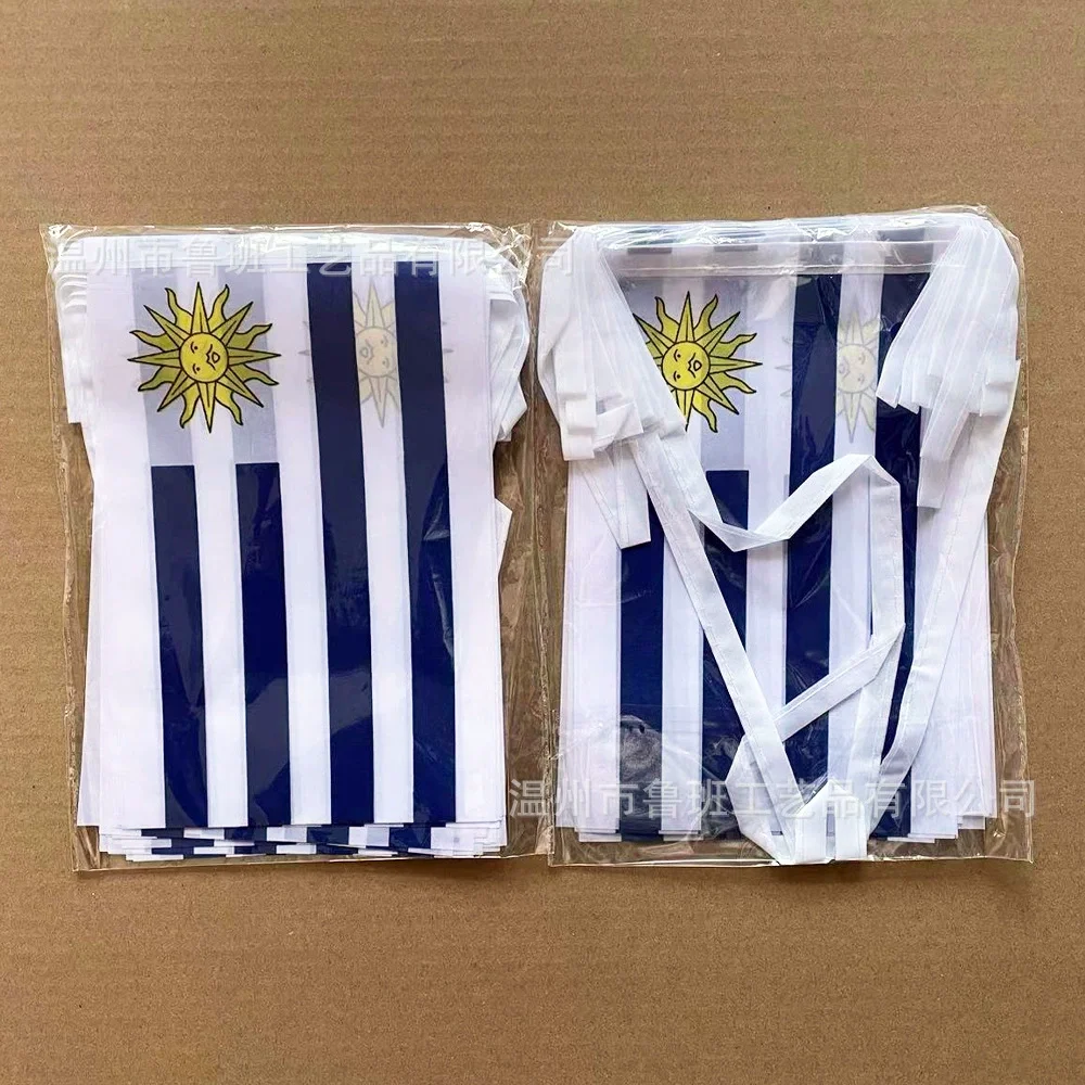 Banderas de batido SKY FLAG Uruguay, 14x21cm, 20 unids/lote, banderas de hilo de Uruguay, pancarta de banderas para decoración de fiestas y festivales