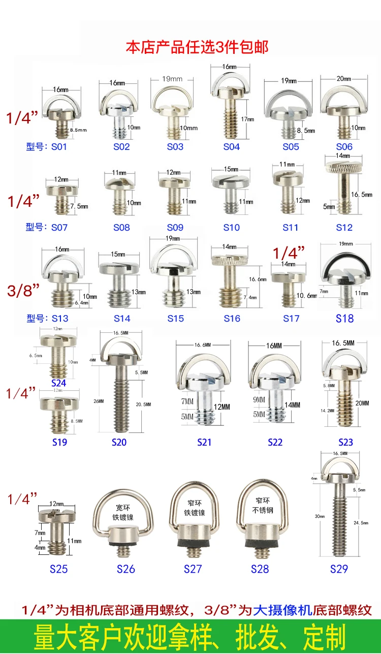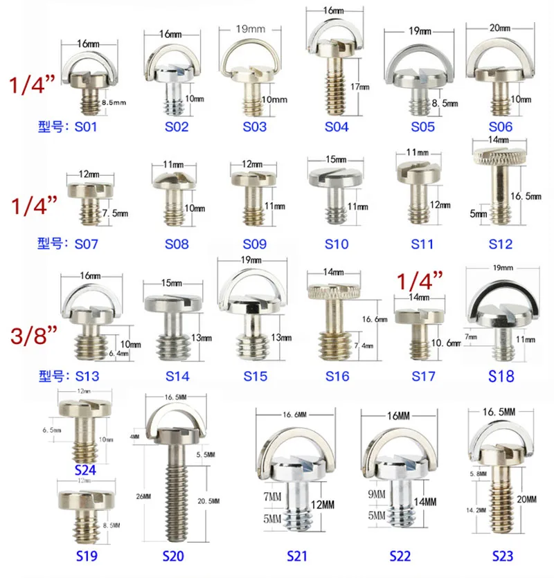 SLR-tornillo de placa de liberación rápida de 1/4 pulgadas, accesorios de visión nocturna para trípode, Perno de fijación de Base, 3/8