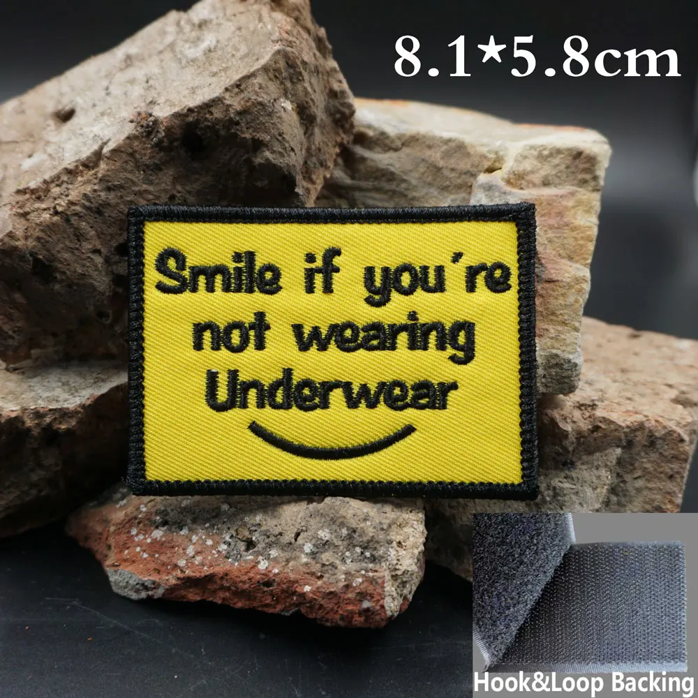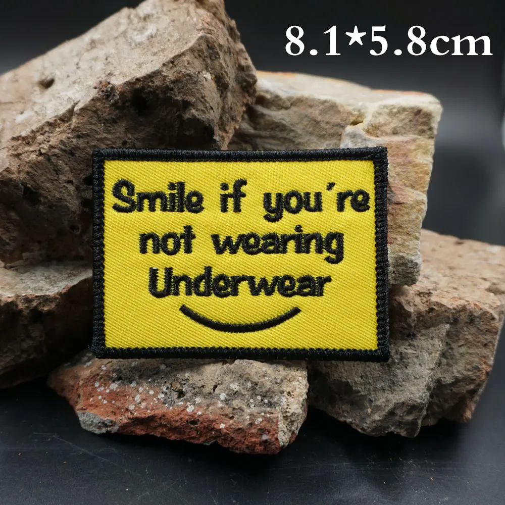 SMILE IF YOU'RE NOT WEAR PANTIAS Parche bordado Aplique Etiqueta de costura punk biker Band Rock Ropa Insignia con respaldo de gancho