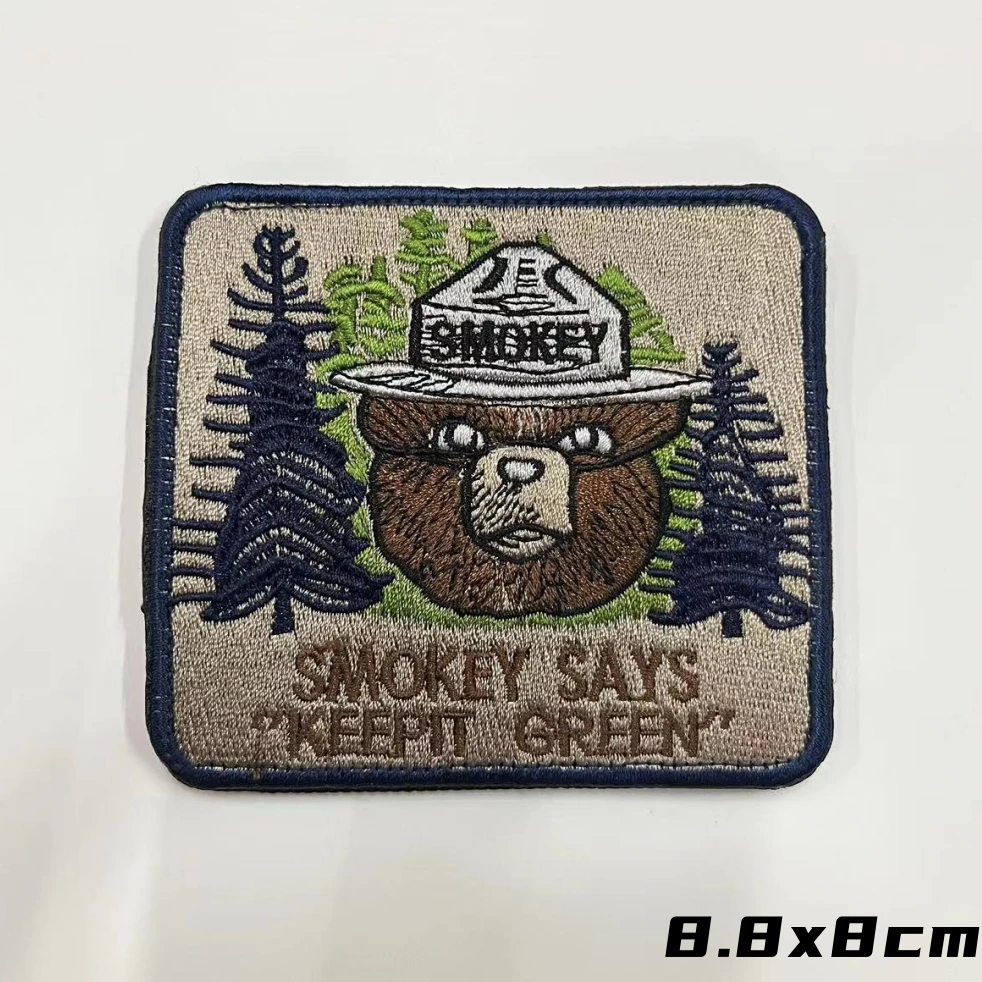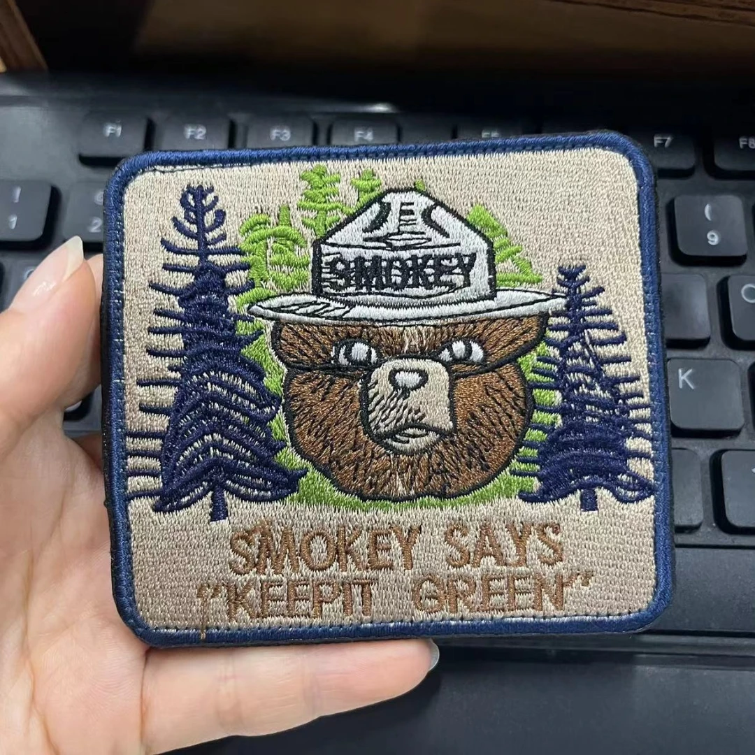 SMOKEY SAYS "KEEPIT GREEN" Parches de gancho y bucle bordados Pegatinas de mochila táctica Insignia de moral de oso