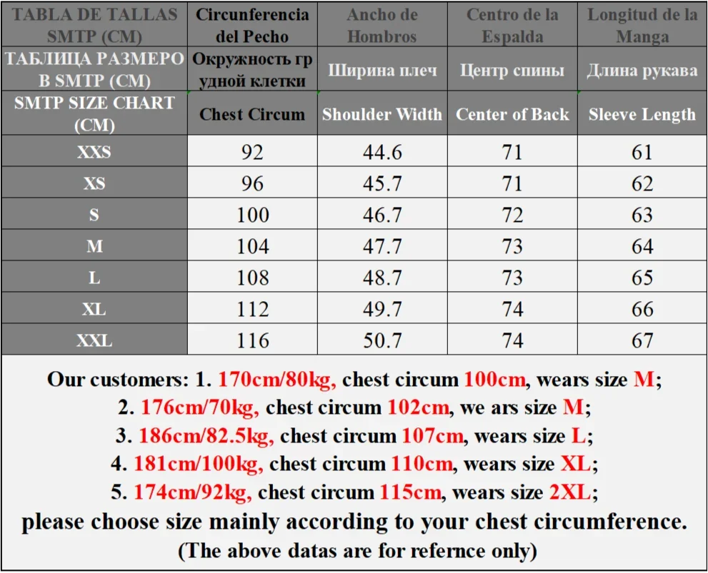 Tablas de tallas legítimas. ¡Los materiales parecen buenos!