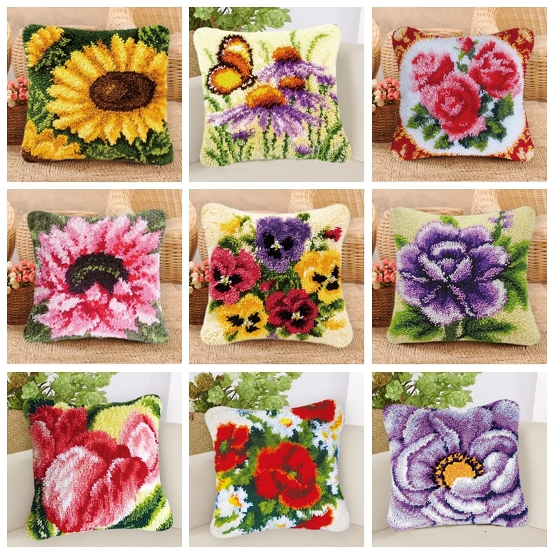 Smyrna flor pestillo gancho Kit esteras cojín almohada DIY artesanía flor costura botón paquete cojín bordado pestillo gancho alfombra