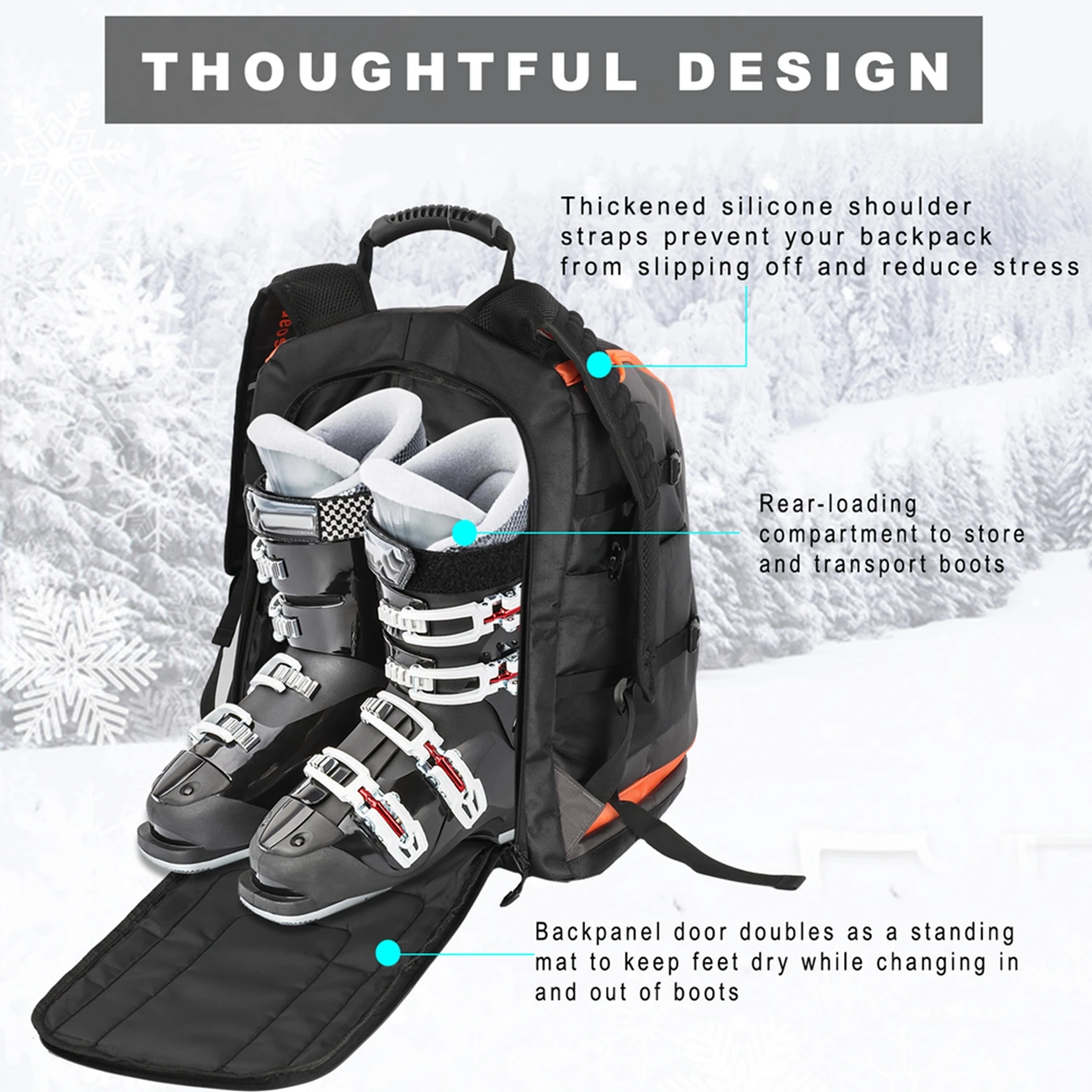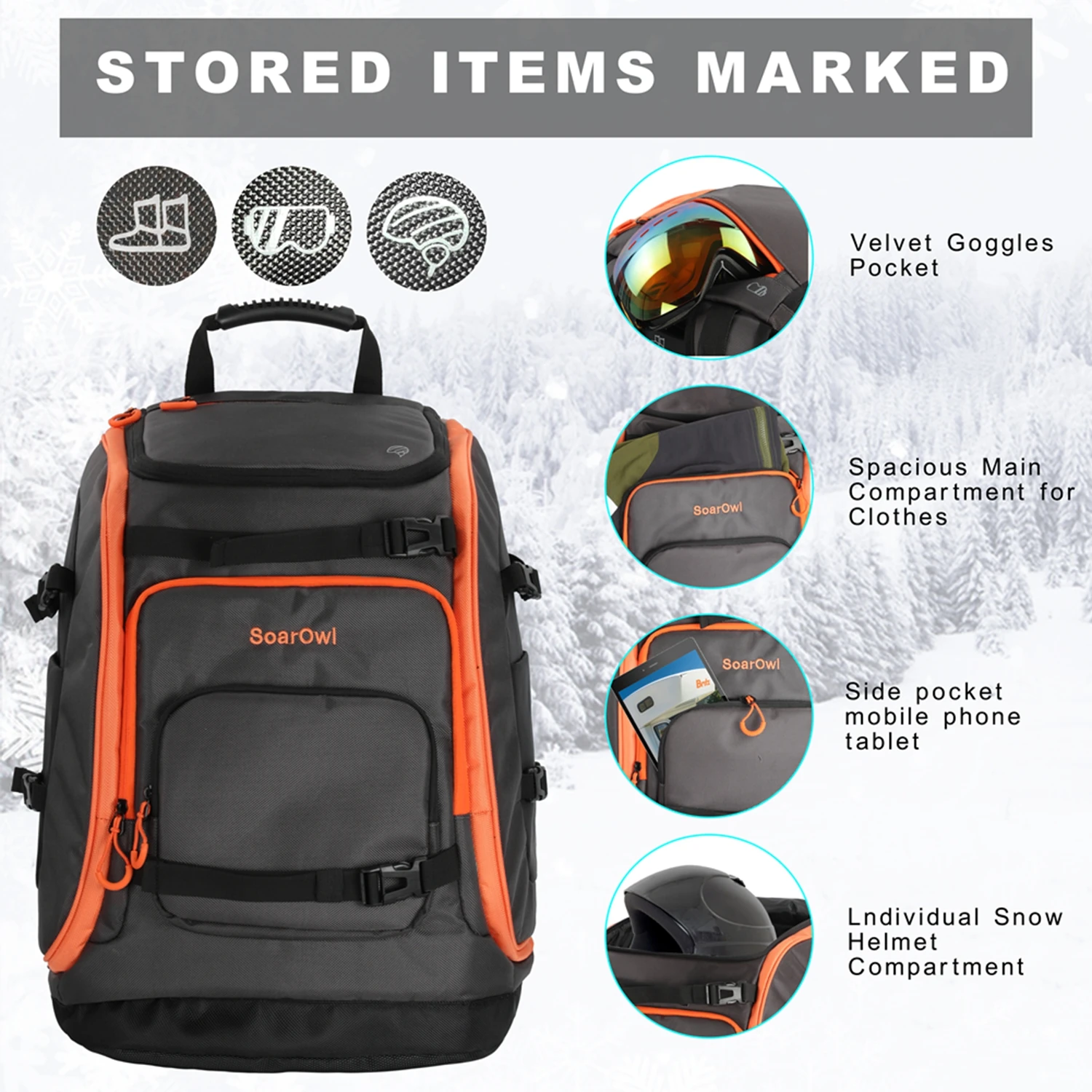 【 65L de gran capacidad 】Bolsa para botas de esquí SoarOwl Con 65 litros de capacidad de almacenamiento, mide 18,1x15x14,2 pulgadas (46*38*36cm), y es capaz de almacenar botas de hombre de EE. UU. hasta la talla 12,5. Es lo suficientemente grande como para almacenar botas, cascos, gafas, ropa, objetos de valor y más. Si tiene mucho equipo para almacenar y transportar, esta bolsa seguramente hará su trabajo.