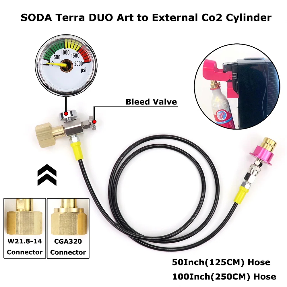 Soda Quick Connect Terra DUO Art a Kit de manguera adaptadora de tanque de Co2 externo compatible con Sodastream con calibre de desconexión rápida