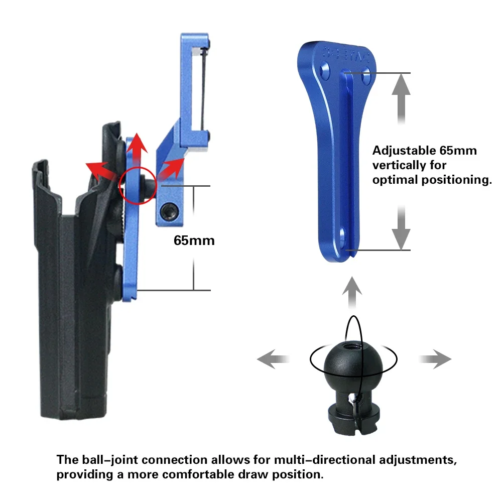 El adaptador de funda para pistola ajustable tipo T SOETAC IPSC es un testimonio del compromiso de la marca para proporcionar tiradores competitivos las herramientas que necesitan para sobresalir en escenarios de alta presión. Diseñado para entusiastas de los equipos IPSC e IDPA, este accesorio versátil está fabricado con una aleación de aluminio liviana pero duradera, lo que garantiza longevidad y facilidad de uso. Su proceso CNC garantiza precisión en cada detalle, lo que lo convierte en una adición confiable a su equipo de tiro.nn**Comodidad y rendimiento personalizables**nUna de las características destacadas de este adaptador de funda es su capacidad de ajuste. Con un rango de ajuste vertical de 65 mm, se adapta a una amplia gama de tamaños de manos, lo que garantiza que pueda encontrar el ángulo y la altura de tracción perfectos para una comodidad y velocidad óptimas. El diseño tipo T permite una fijación perfecta a la funda de la pistola existente, mejorando su funcionalidad sin comprometer la seguridad o las capacidades de extracción rápida. La junta de casquillo esférico proporciona un ajuste direccional completo, lo que le brinda la flexibilidad de ajustar su sorteo para varias posiciones y escenarios de disparo. nn**Diseñado para Competitive Edge**nYa sea que sea un competidor experimentado o alguien que busca mejorar su rendimiento, el adaptador de funda SOETAC está diseñado para brindarle una ventaja en las competiciones de IPSC e IDPA. Su compatibilidad con fundas cerradas es testimonio de su versatilidad, permitiéndole utilizarlo con una variedad de equipos. El producto está disponible en diferentes opciones de SKU para satisfacer sus necesidades específicas, ya sea que esté actualizando una configuración existente o comenzando con un kit completo. Con el adaptador de funda de pistola ajustable tipo T SOETAC IPSC, está equipado para aprovechar al máximo sus esfuerzos de tiro competitivos.
