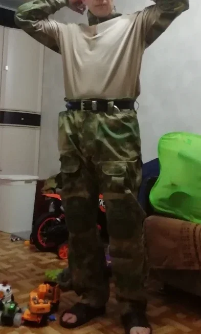 2.Cinta ajustable en la parte inferior y las rodillas de los pantalones.