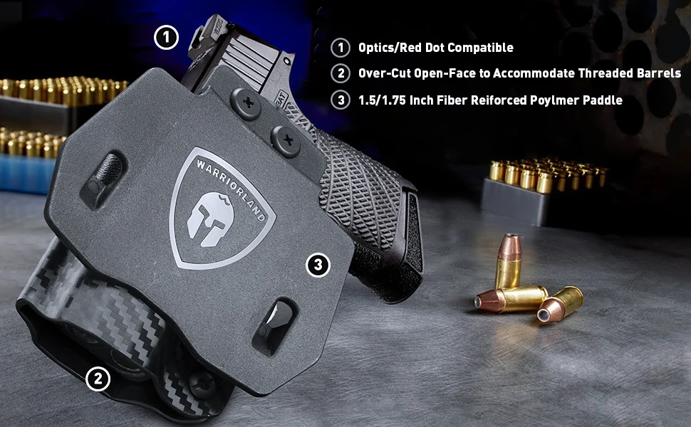 SISTEMA AUDIBLE AJUSTABLE-Puede escuchar un sonido claro de "CLIC" cuando el arma de fuego estaba firmemente asentada-La retención es ajustable con el destornillador Philips para una estanqueidad adecuada