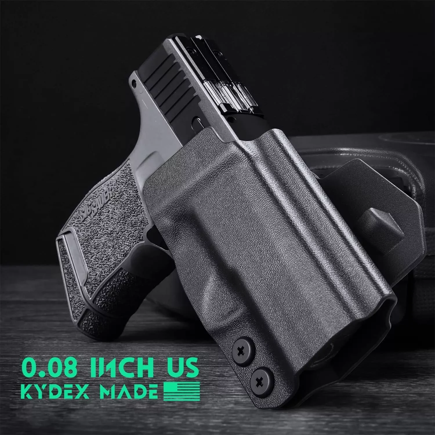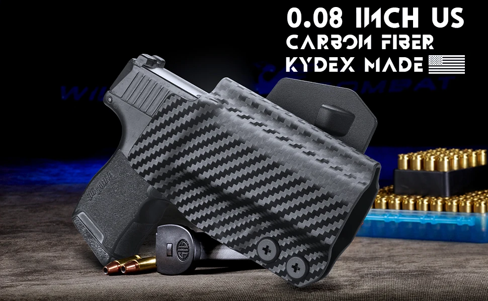 0,08 PULGADAS US FIBRA DE CARBONO KYDEX MADE-La funda OWB para P365 está hecha de. Material kydex de fibra de carbono estadounidense de 08 " (2mm), que posee caracteres resistentes, duraderos, impermeables, lavables y ligeros-Súper adecuado para el transporte diario oculto