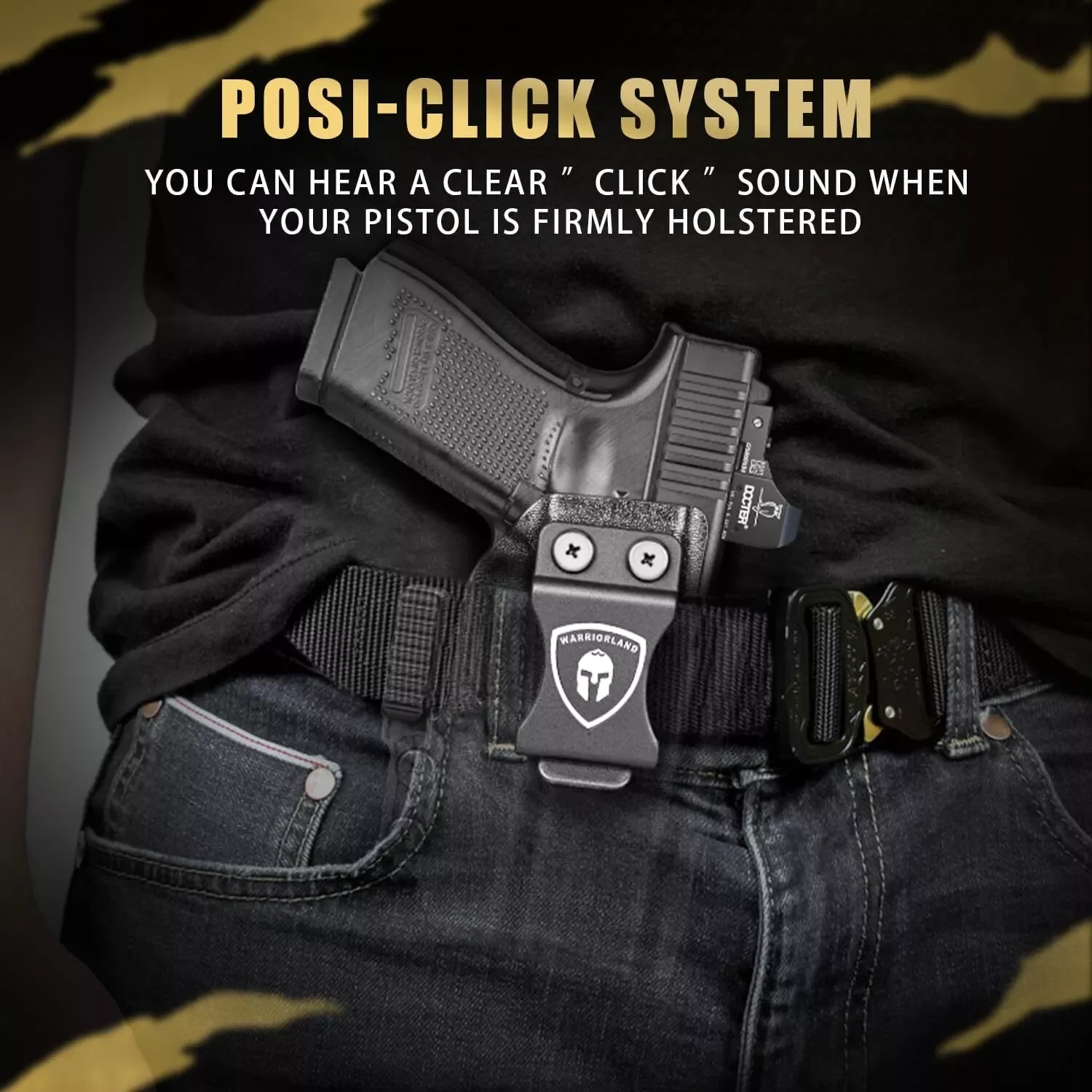 SISTEMA DE BLOQUEO DE "HECLICAR" AUDIBLE POSITIVO: Cuando la retención de la funda esté bien personalizada, escuchará sonidos claros de "clic" cuando su pistola esté firmemente funda.