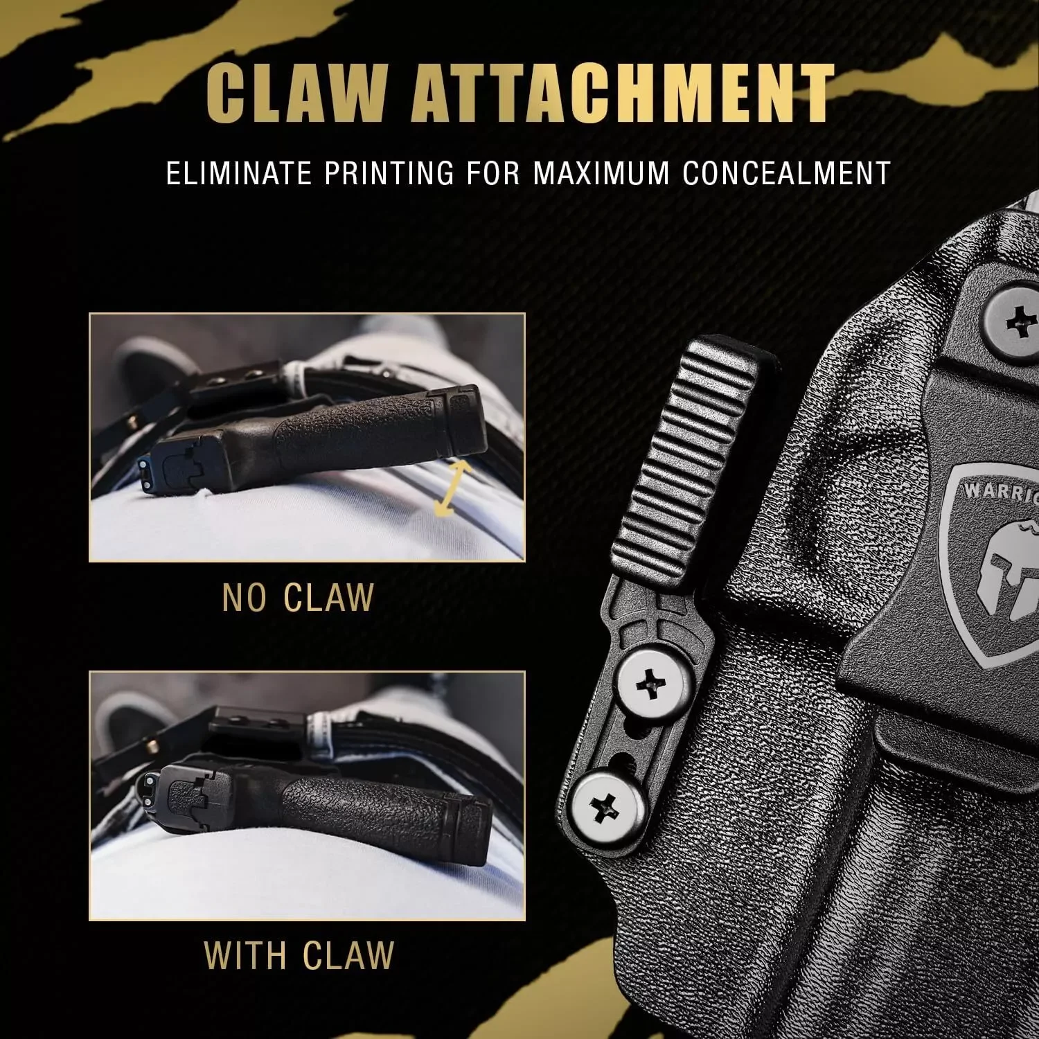 MÁXIMA CONCEALMENTE: El accesorio de garra permite que el trasero de la pistola se acerque más a su cuerpo para eliminar la impresión y lograr la máxima capacidad de ocultación.Equipado con 2 tornillos adicionales para llevar sin garra