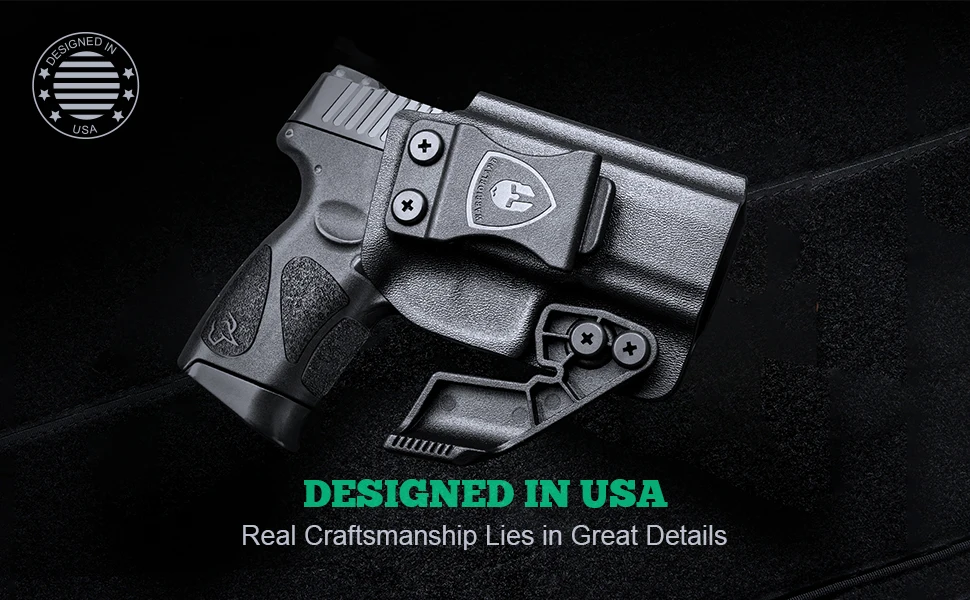 GUARD DE SUOR DE LONGITUD COMPLETA Y SISTERMO AUDIBLE POSI-CLICK - El protector contra el sudor de longitud completa puede evitar el sudor hacia su pistola - Puede escuchar un sonido claro de "CLIC" cuando el arma de fuego estaba firmemente asentada