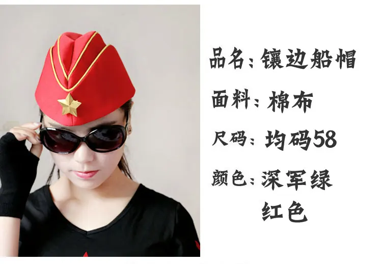 Sombrero de barco para actuación de baile marinero, boina con uñas de sauce ruso, Color verde, rojo y negro